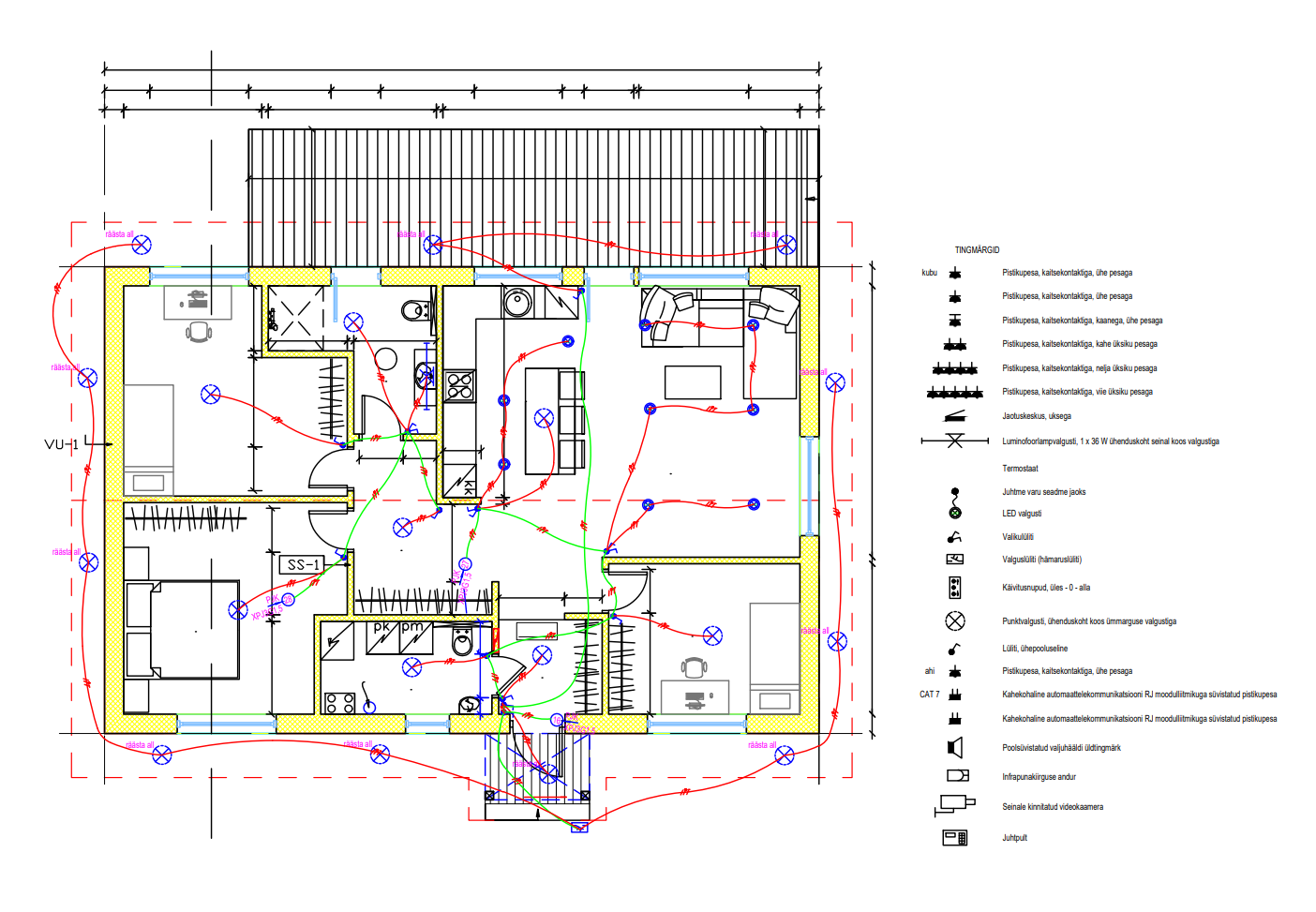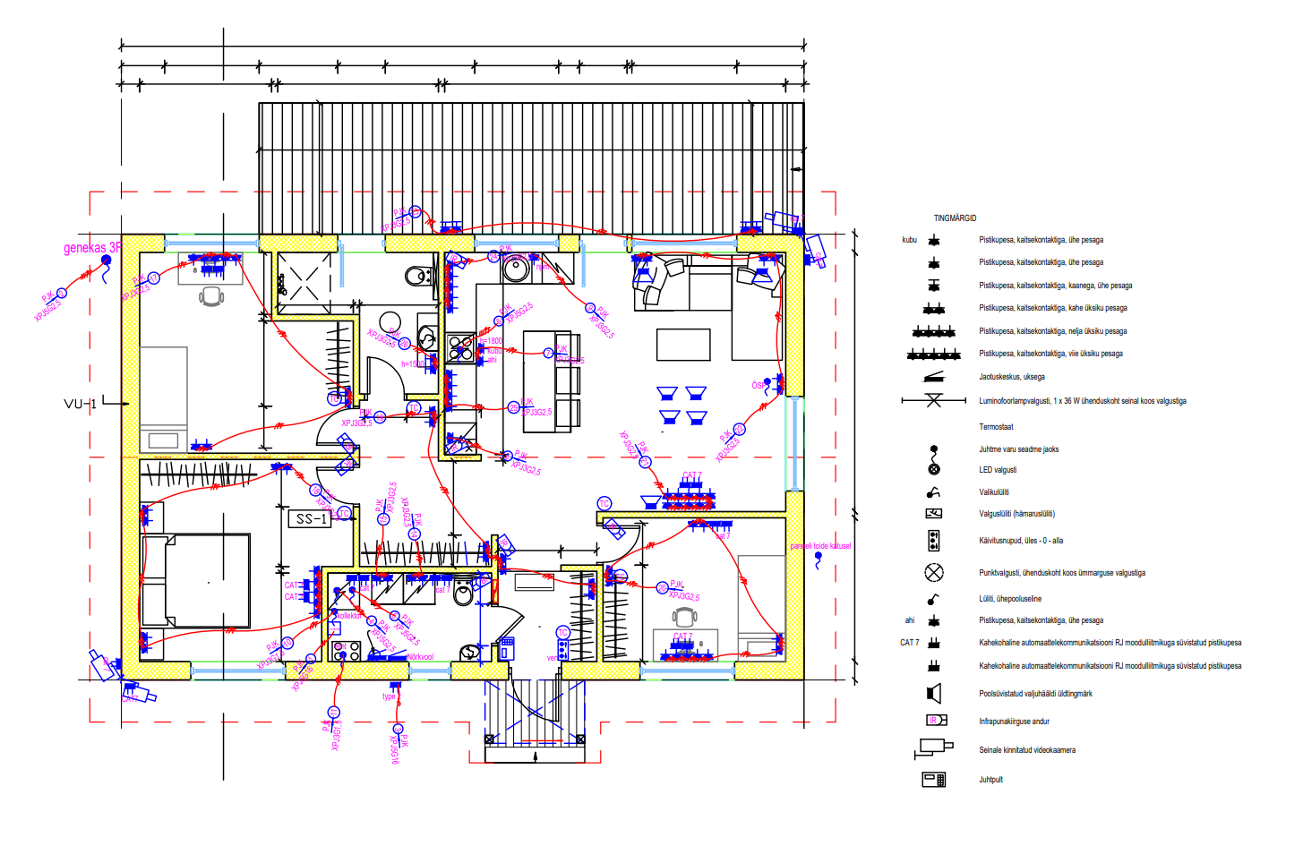 Pakkumine sisaldab tööd koos materjaliga. Töödeks on kaablite paigaldus majas antud skeemi põhjal. Raha tasumine töö algul, kui tegevuseks läheb.