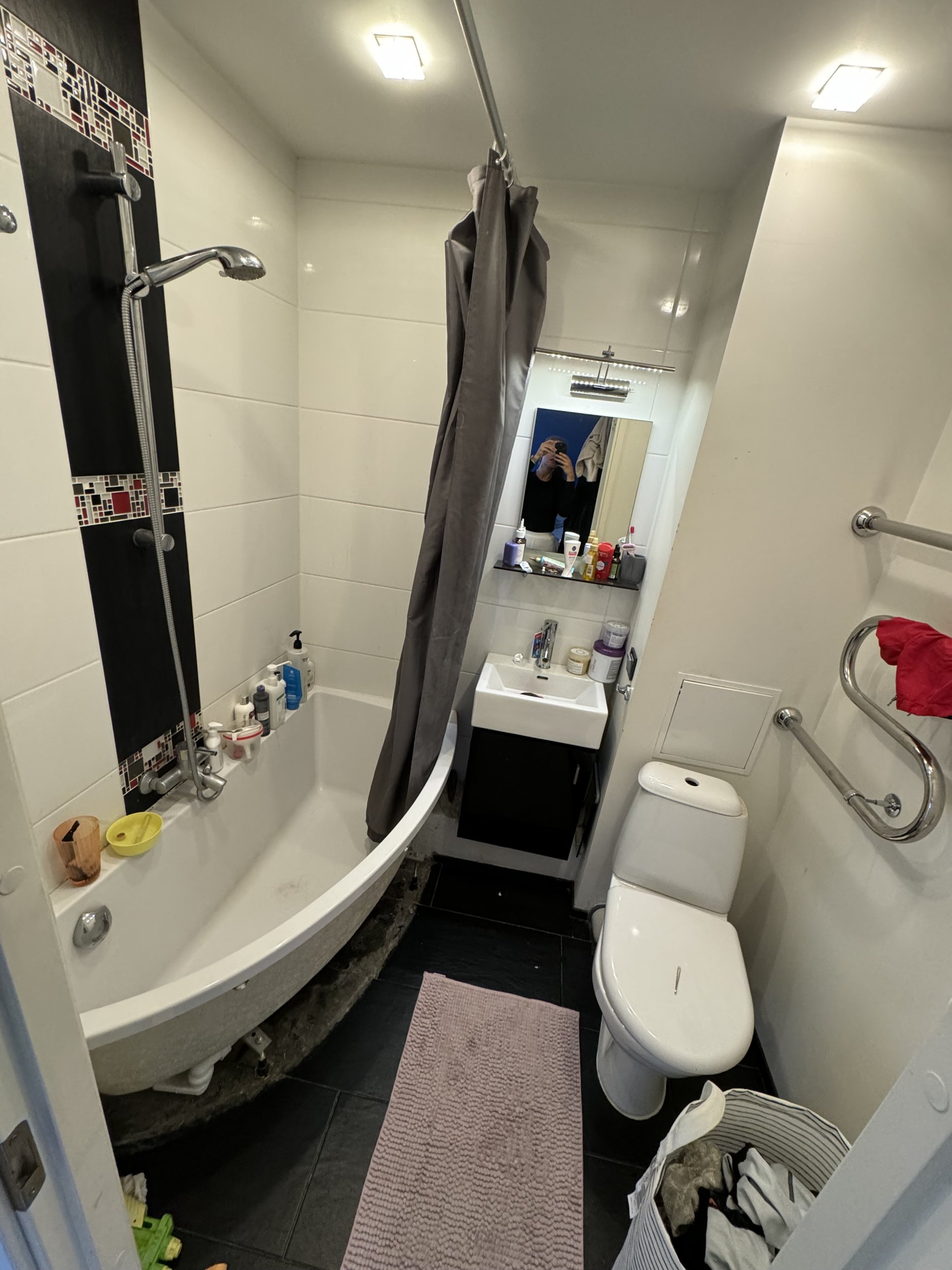Sooviks vanni välja võtta ning panna asemel dušinurga nii et segisti oleks samas seinas kraanikausiga. Tuleks teha põrandale kalle ning uksed läheksid “kokku klapitavad. Lisaks sooviks vannituppa saada ka pesumasina, ehk siis vaja ka selleks vedad torud. Ideaalis tahaks kasutada vannitoas mikrotsementi.