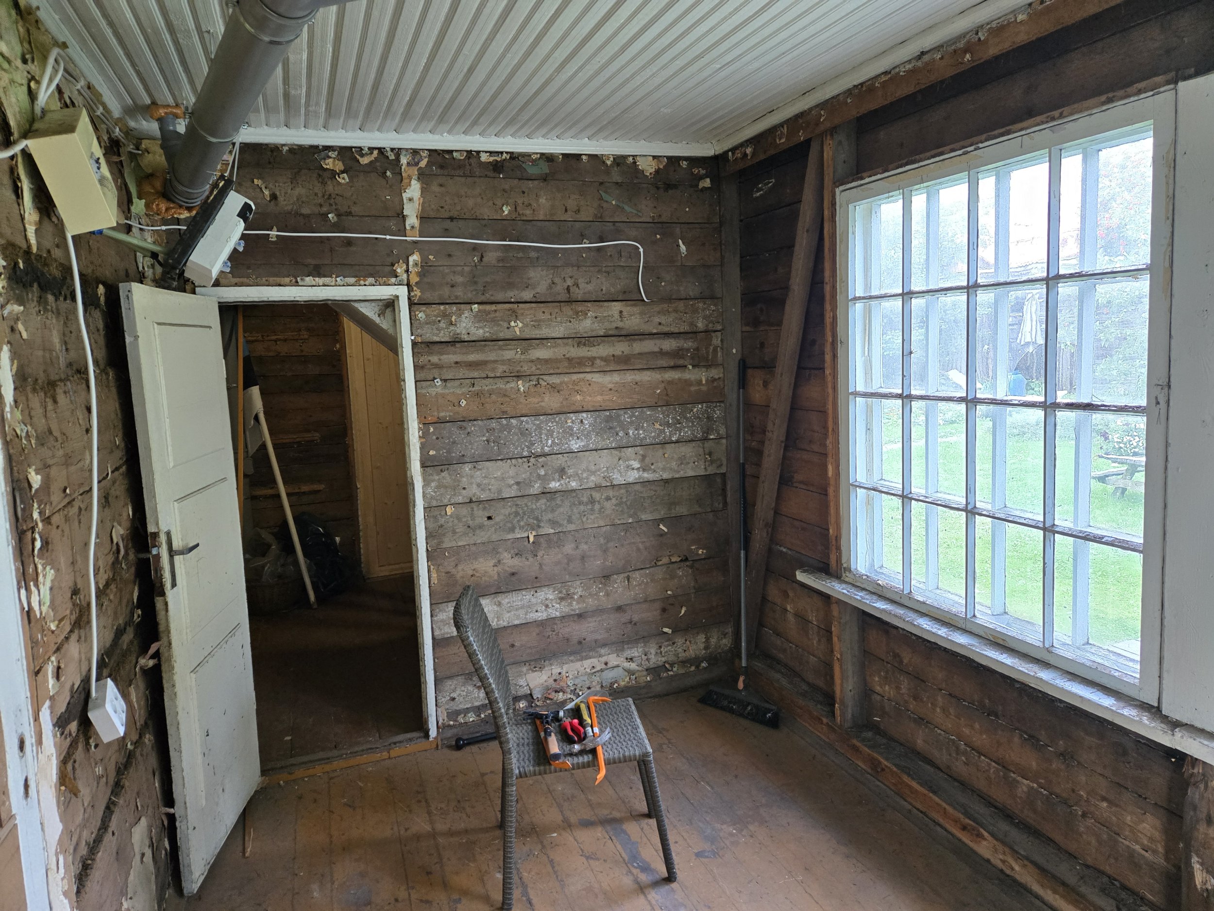 Välisseinade soojustus(kivivill+ niiskustõke), laudis, kips. u30m3 Renoveeritav osa puitkarkassil.