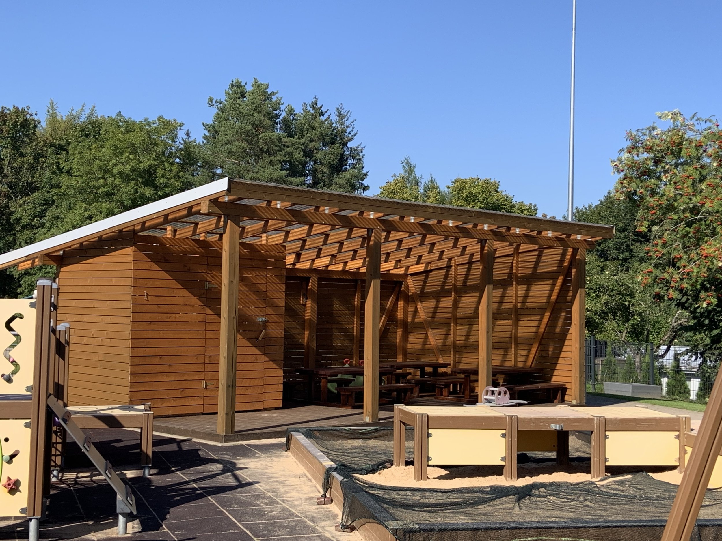 Töö tulemus on näha juuresolevatel piltidel. Aitäh kiire teostamise eest. Lapsed said eelseisvateks vihmasteks päevadeks endale mõnusa õuesolemise pesa! Tarukese lasteaed Viljandimaal tänab!!!