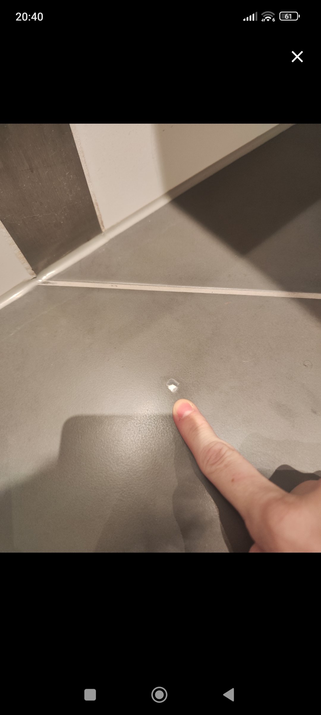 Vannitoa põrandaplaadi peale on kukkunud midagi rasket ja sealt on täke väljas. Soovin kohtparandust.