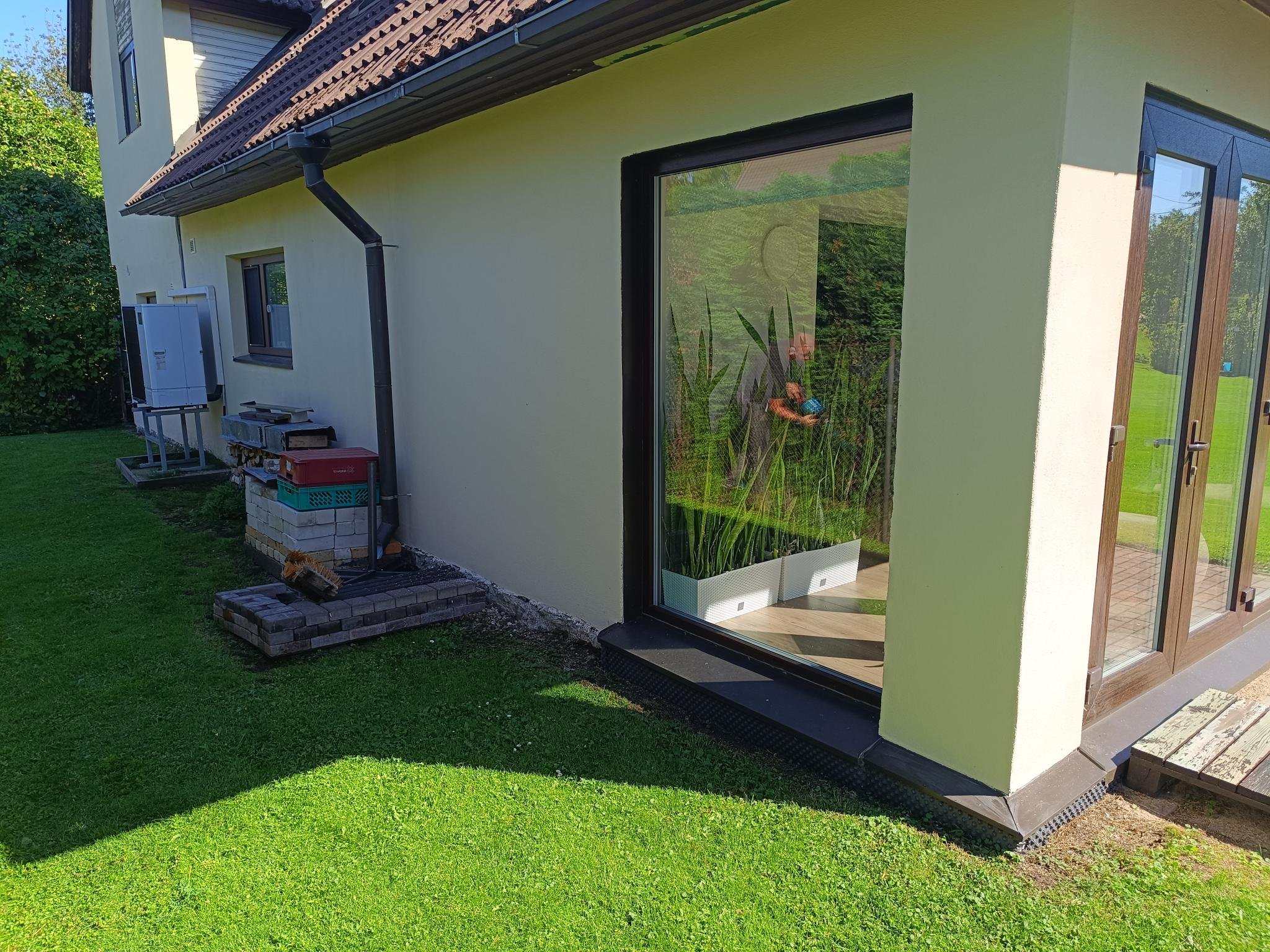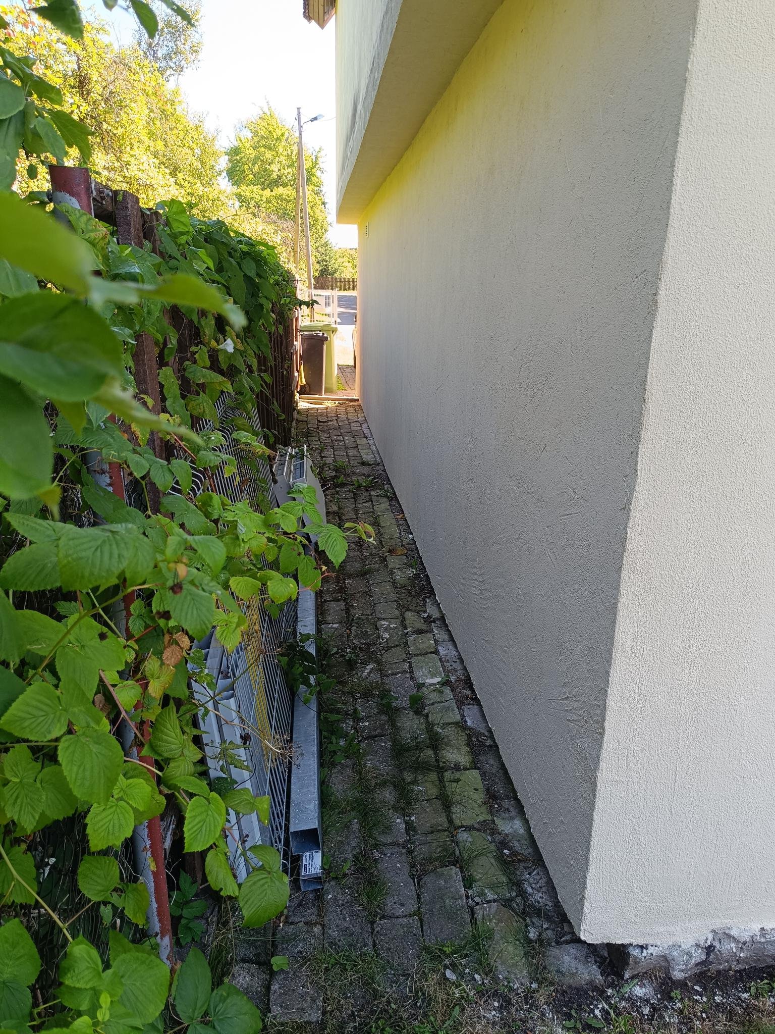 Paigaldada drenaaz ümber maja. Soojustada selle raames vundament (kuni ca 10-20cm maapinnast kõrgemale). Tööde lõppedes paigaldada maja taha, ühte külge (telliskivide asemel) ja pooles pikkuses maja ette (kuni olemasoleva kivini) tänavakivi. Näiteks 60 x 60 kivid, otsest eelistust ei ole, pigem soodsam ja kiirem lahendus. Maja neljandasse aiapoolsesse külge tuleb hiljem terass, sinna kive vaja ei ole. Maja ees taastada olemasolev olukord tänavakividest. Sadevee kogumiskaev olemas maja taga kohe vundamendi ääres. Olemasolevad vihmavee torud võimalusel ühendada drenaazi. Paigaldamisel arvestada kommunikatioonide (vesi, elekter, optiline kaabel jne) ühendustega, asukohad näidatakse ette enne töö algust. Maja taga on Õhksoojuspump.