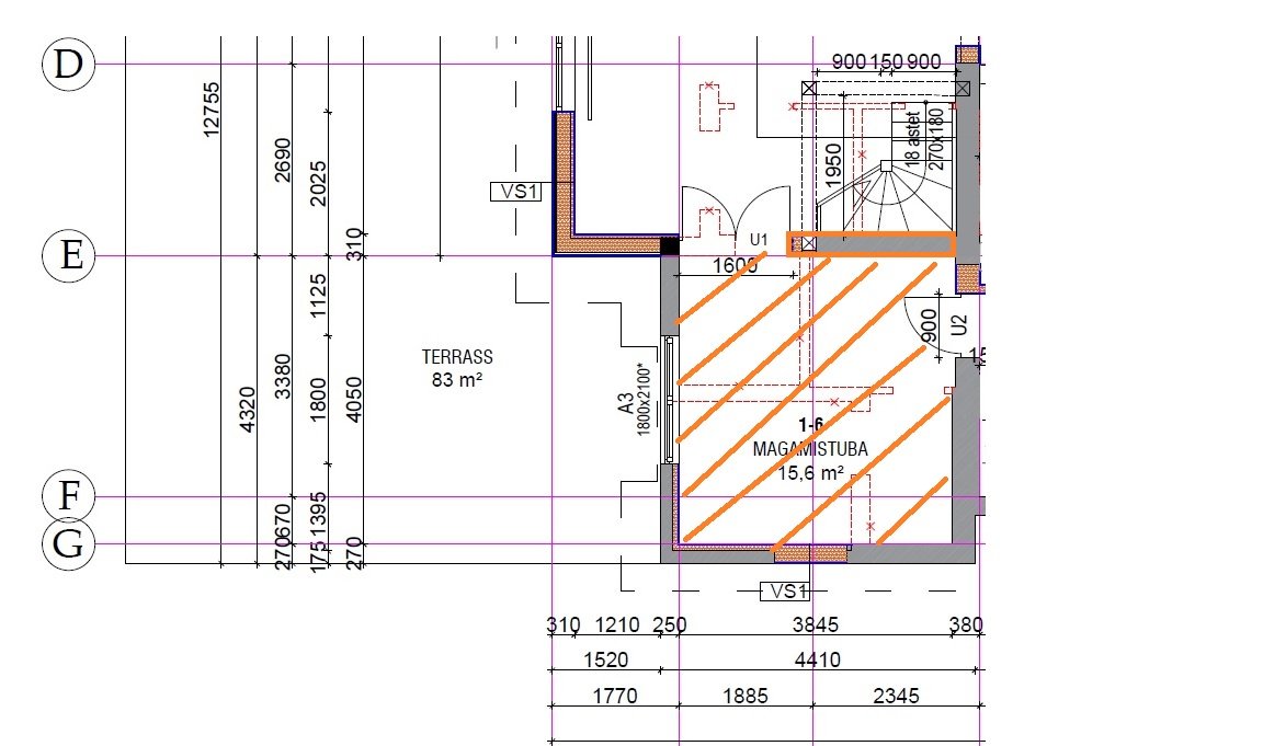Terrassiukse kohal olemasoleva tala mõõdud: 690x28x14 cm (uus tala min. 800x28x25 cm)