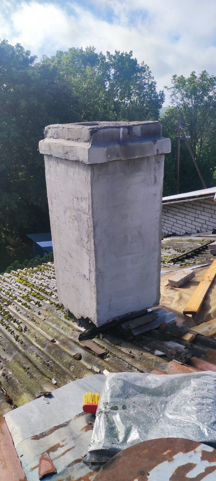 Hinnas uued pitsid punasest tellisest ja müürimört. Hinnas ka materjali vedu ning plekistmütsid korstnatele.
