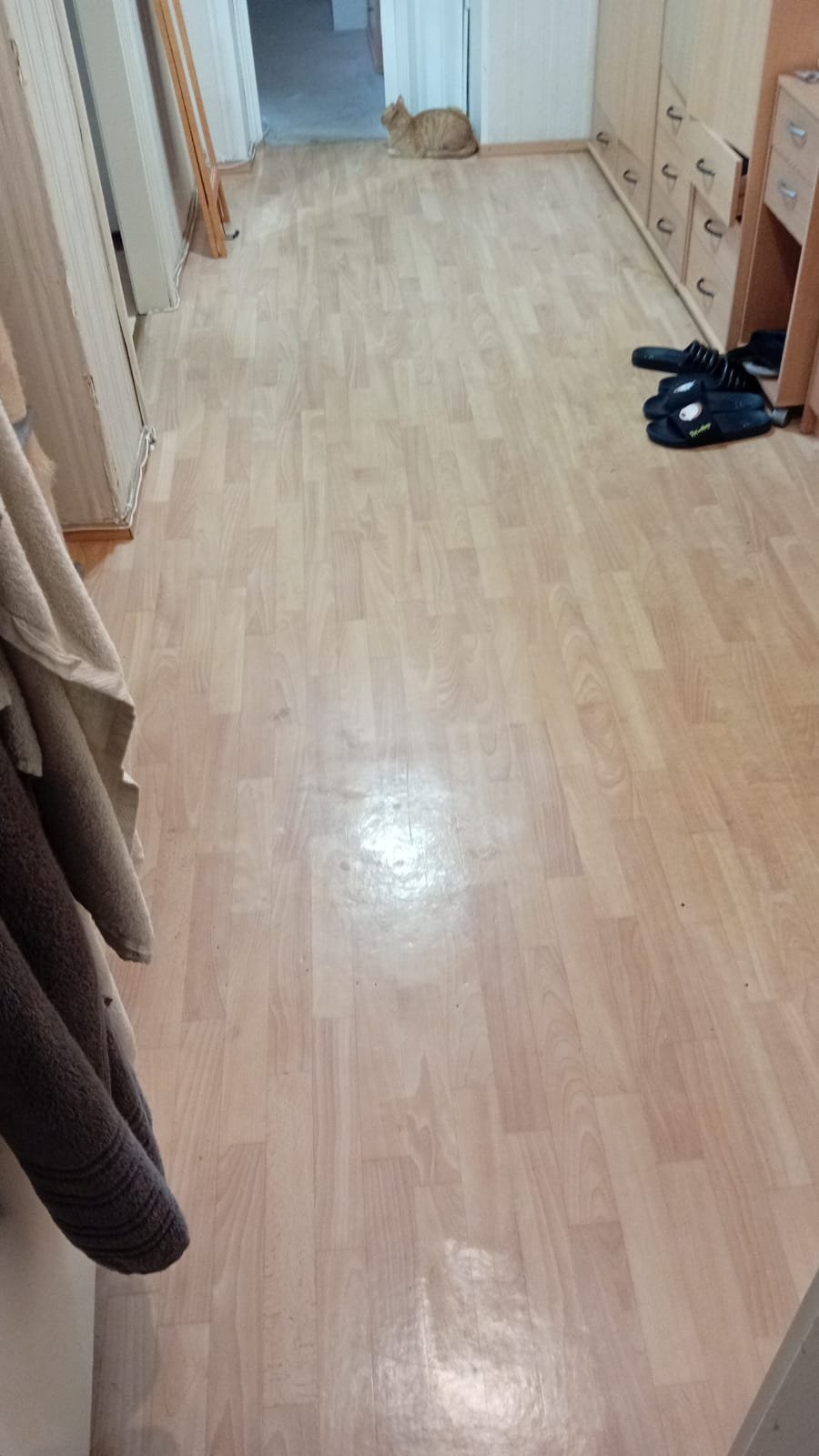 Põrand on veekahjustusi saanud. Must põrand ja linaleom.peale.Tegemist korteri esiku põrandaga ca 15 ruutu.