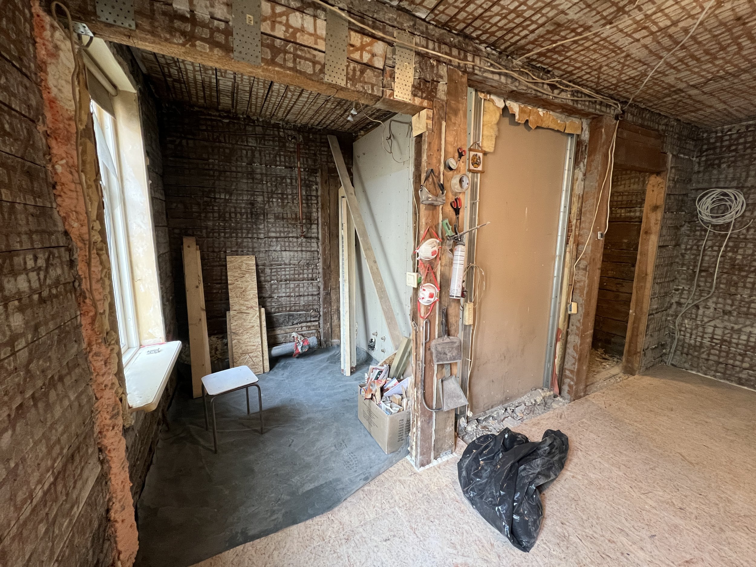 • Magamistoas (~10m2) on juba renoveeritud lagi ja seinad (lõppviimistluseta). Seintes on veetud kaabeldus ja eksisteerivad toimivad valgustid. Tasandavat kihti võib vajada põrand.