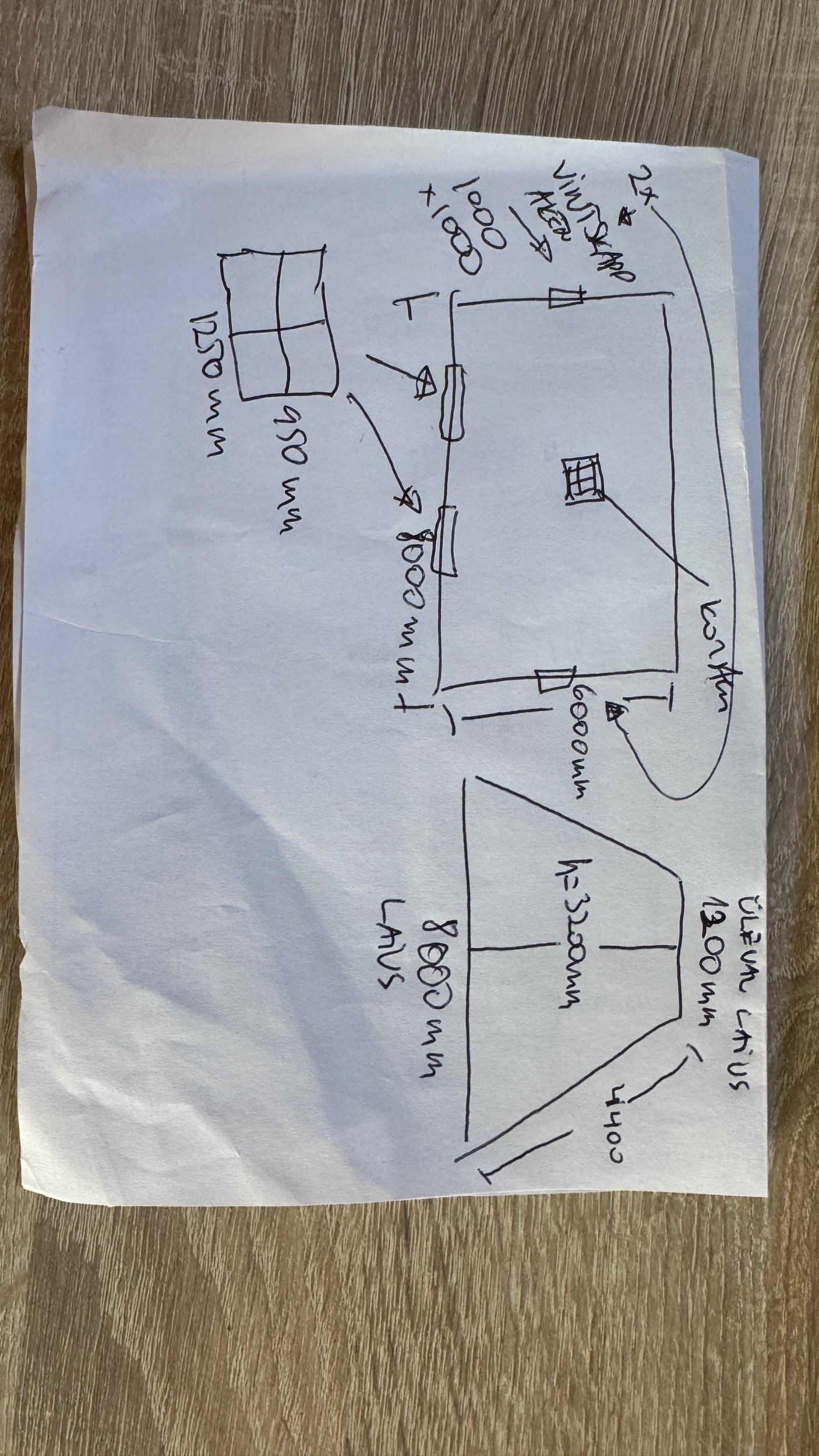 ruum on 8m lai x 6 m pikk. kõrgus toa keskel 3,2 meetrit.