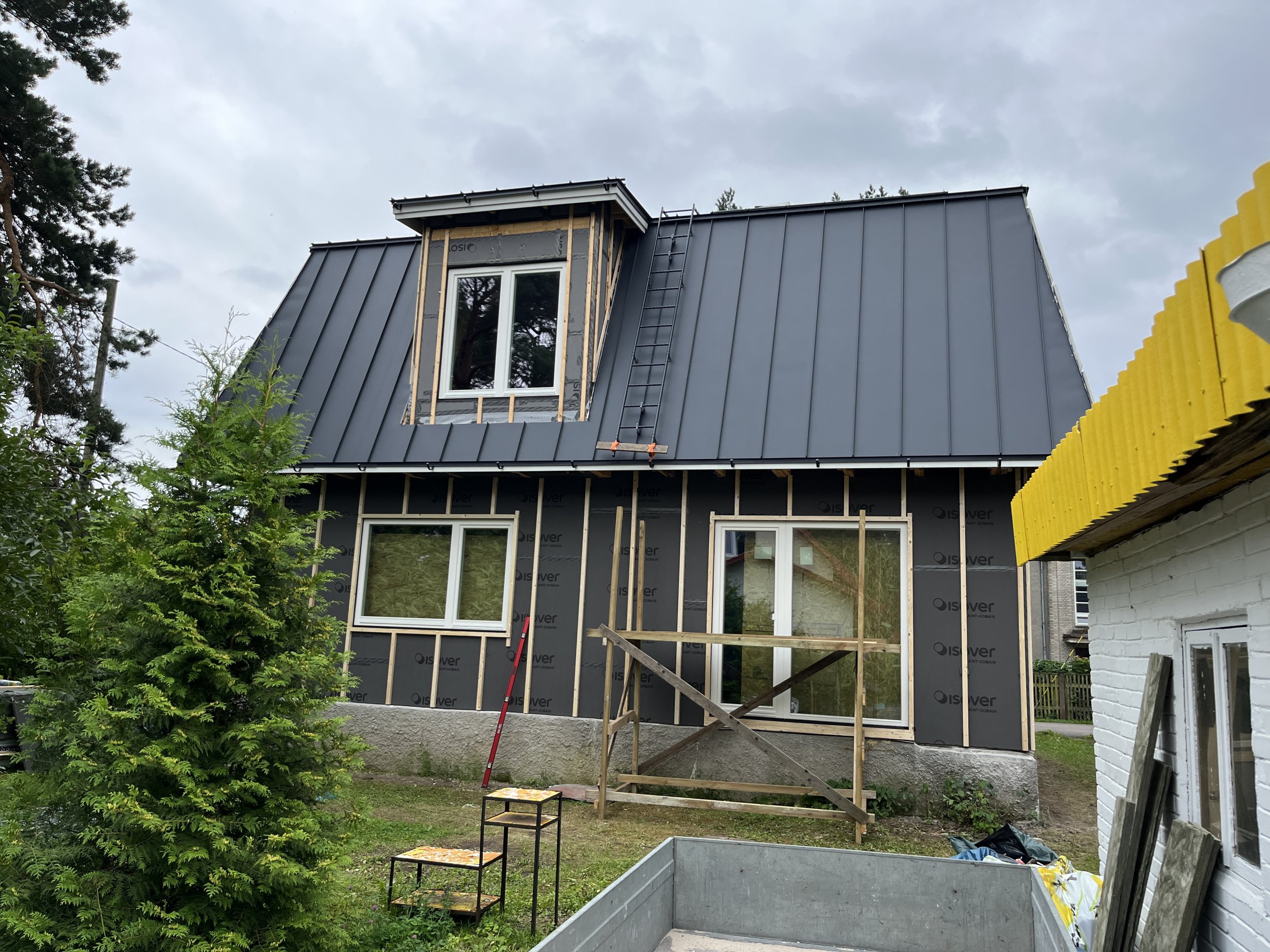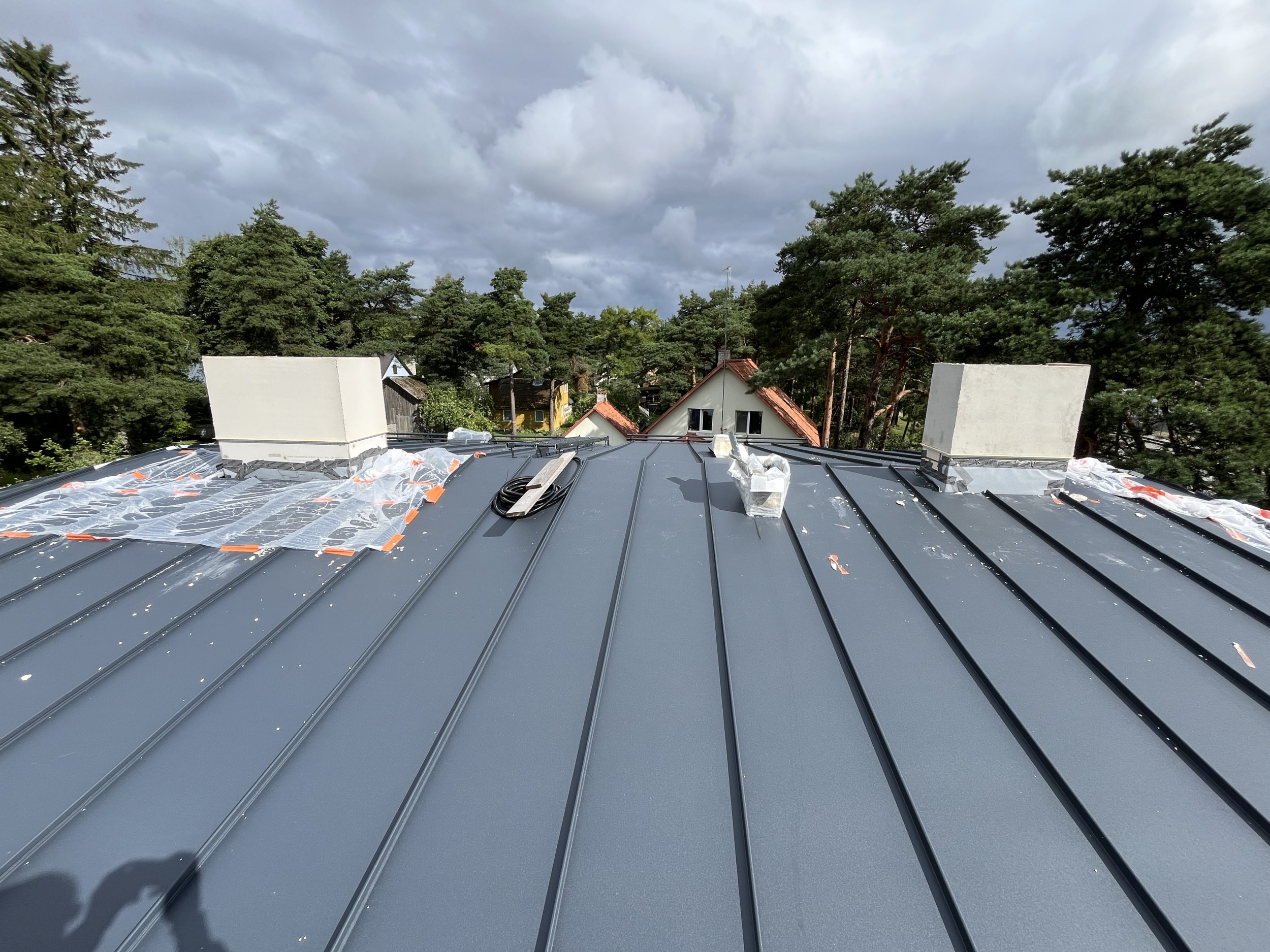 Vaja paigaldada katuse katteplekid, lumetõkked, vihmaveerennid jms varustus (Ruukki tooted - värv RR2H3 - antratsiithall).