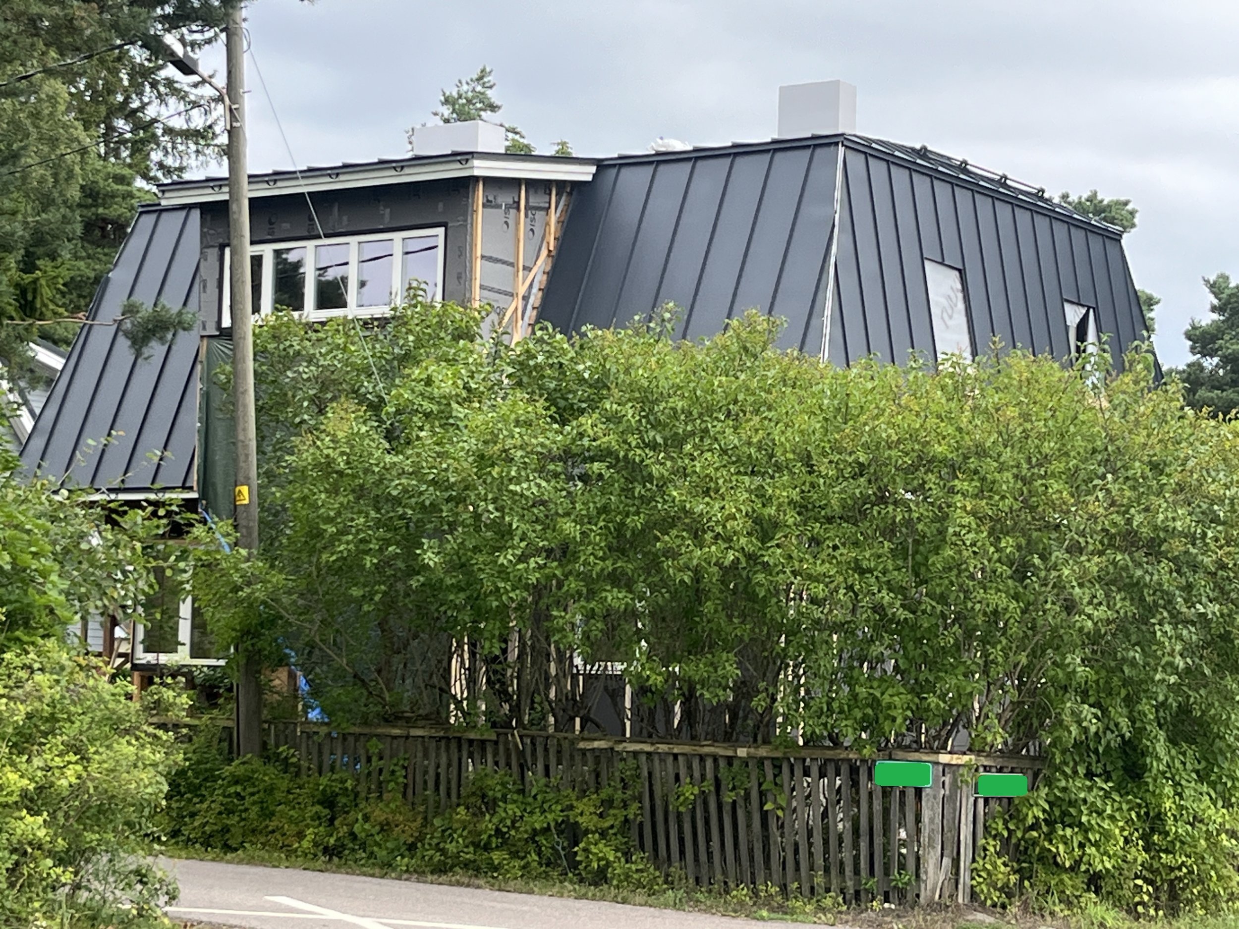 Kõik materjalid on olemas, va kõige ülemine harjaplekk, korstnaplekid (sh korstnakatted), küljeakende plekid.