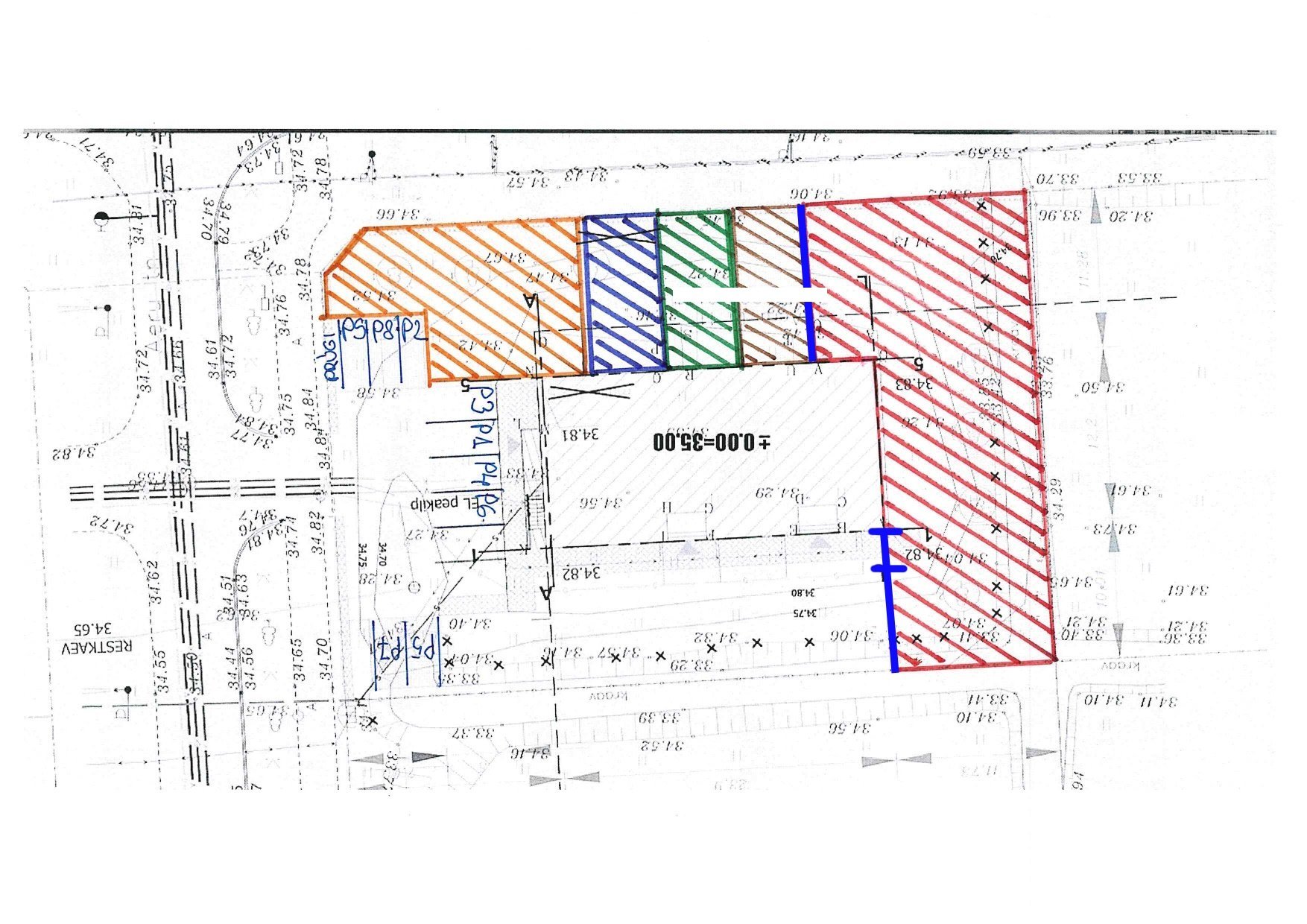 Lisatud on plaan, kus aiaosad ja värava koht on ära märgitud ereda sinisevärvilise joonega.