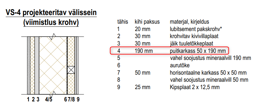Hinnale lisandub 5% hange.ee tasu. On võimalik ka muuta lahendus. Hüdro Seinakarkas C24 45x195, kuiv 18% (soojustus u 200 mm seina sees) OSB või samaväärne plaat Kingspan K 50 mm Krohv+värv Katus 45x245 C24 kuiv 18% Aluskate + teipimine Distantsliist Roovitus (sõltub katusekatest): näiteks 32x100 |