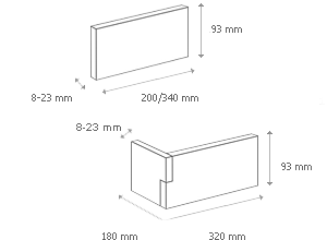 Välisnurgad 200/340 x 93 x 8-23 mm