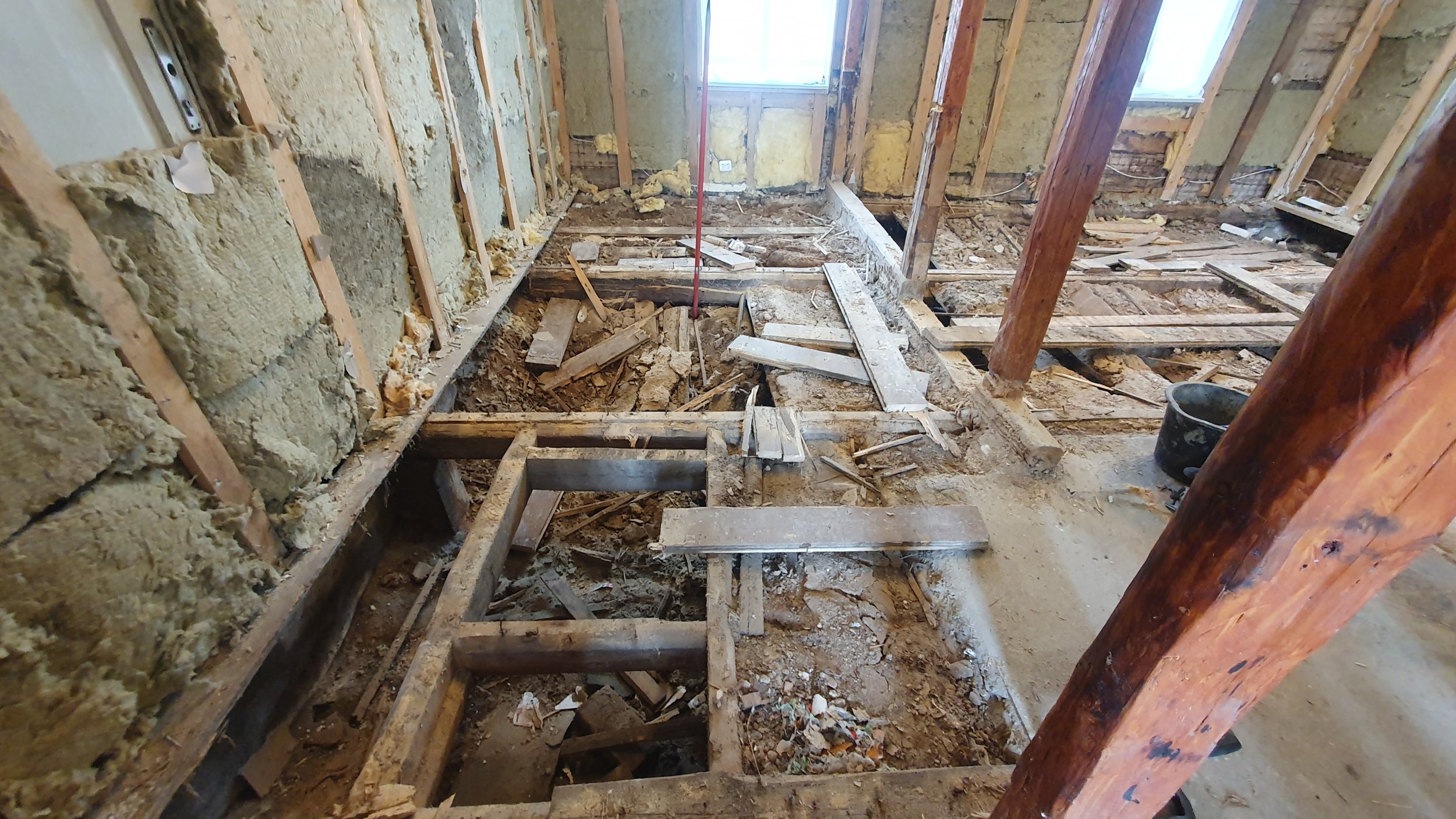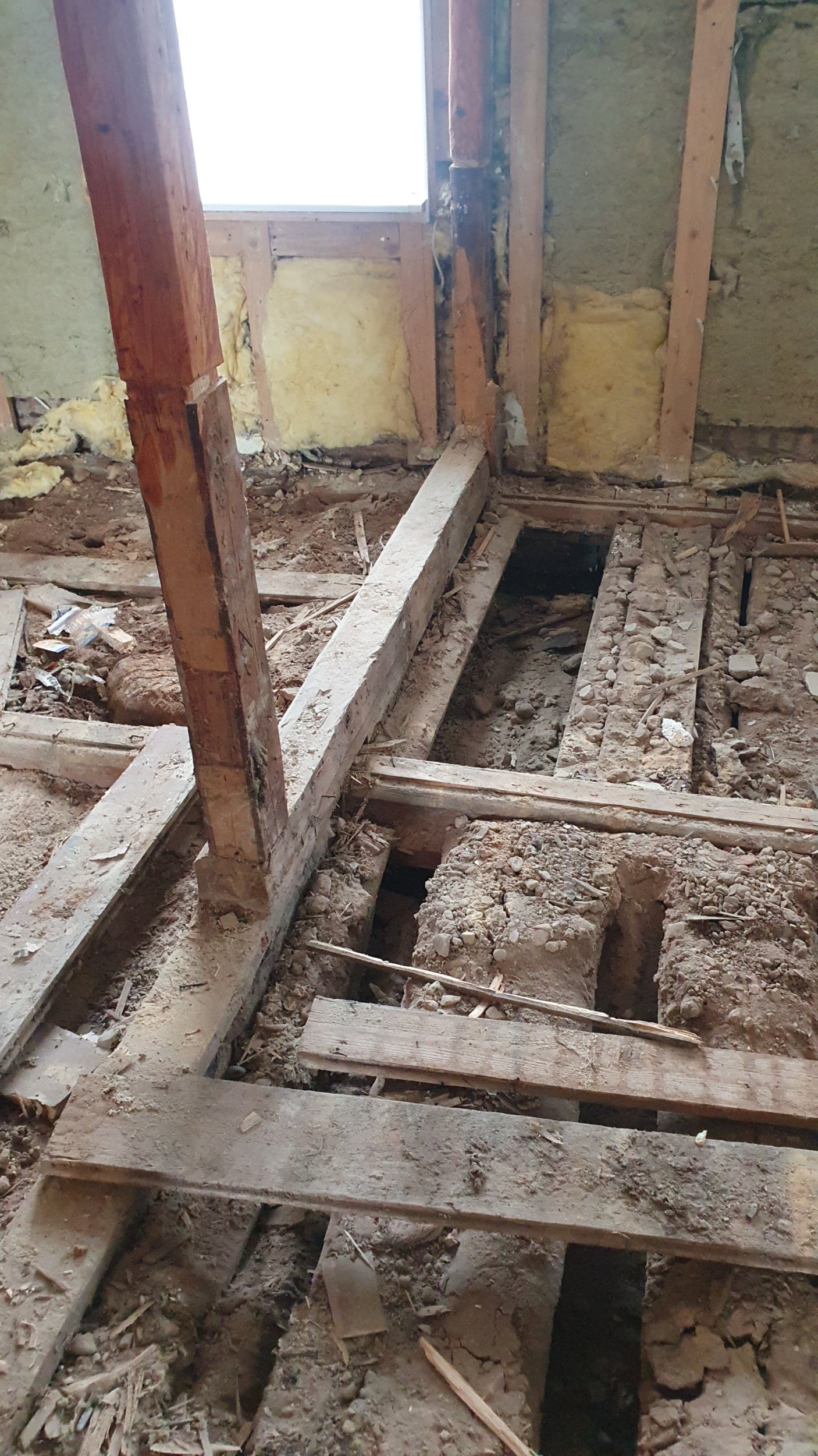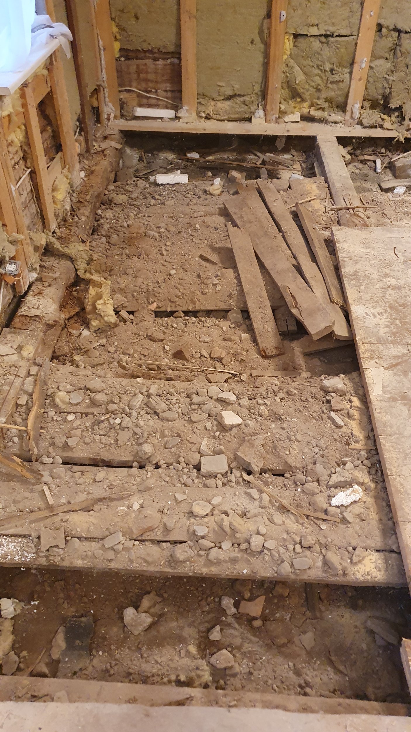 1. Vanade põrandalaudade eemaldamine (kaks kihti põrandat olen juba ise eemaldanud). Mittekandvate põrandatalade eemaldamine. Need ehk puitmaterjal utiliseerida hoone hoovipoolsesse aeda (saab välja visata akna kaudu otse akna taha), või võib töö teostaja need endale võtta küttepuudeks.