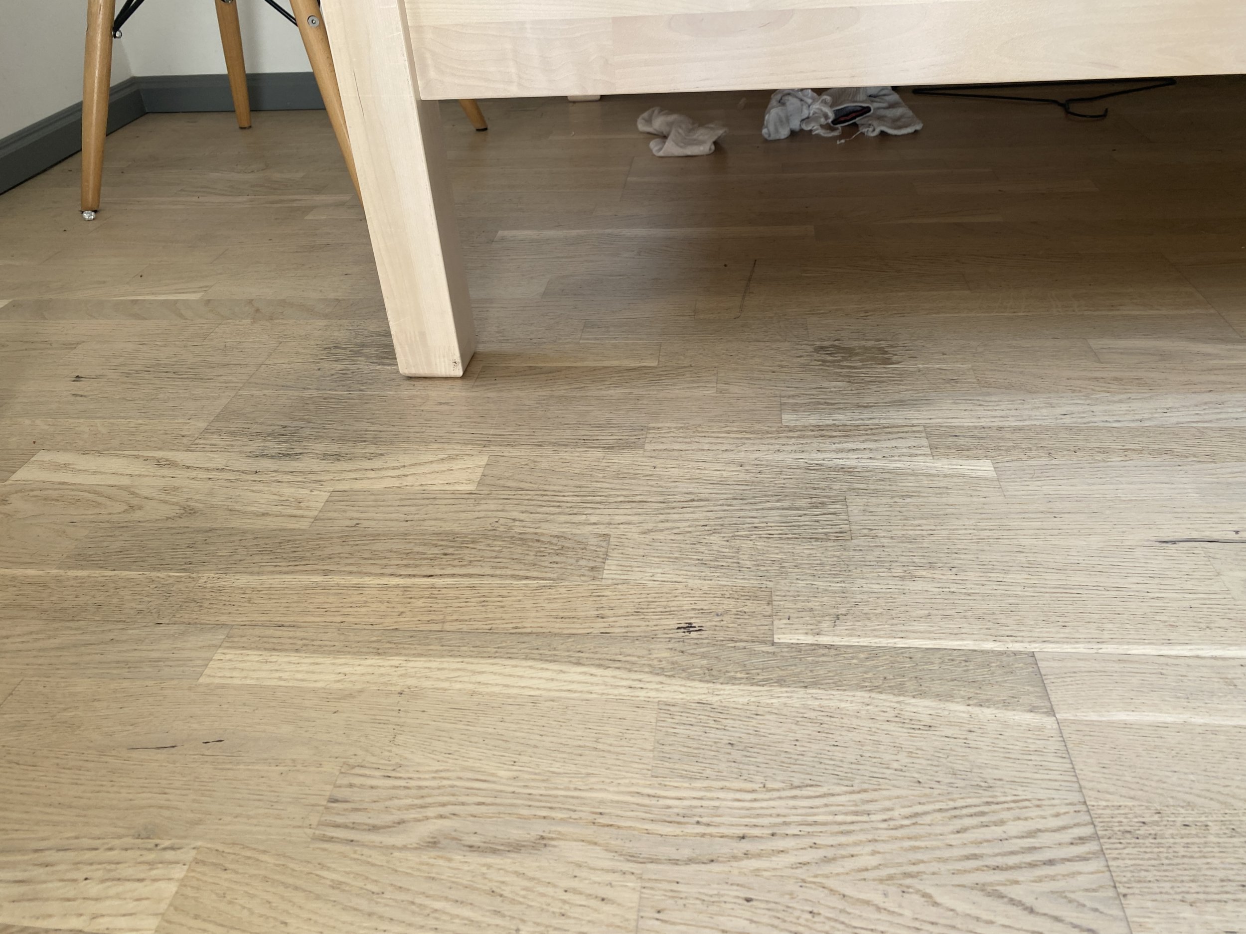 Tööde teostamise ajaks eemaldatakse korterist lahtine mööbel, kohtpaigaldatud mööbel jääb paigale ja nende seest ja alt me põrandat ei uuenda - välja arvatud kahjustatud koht, mis ulatub mööbli alla.