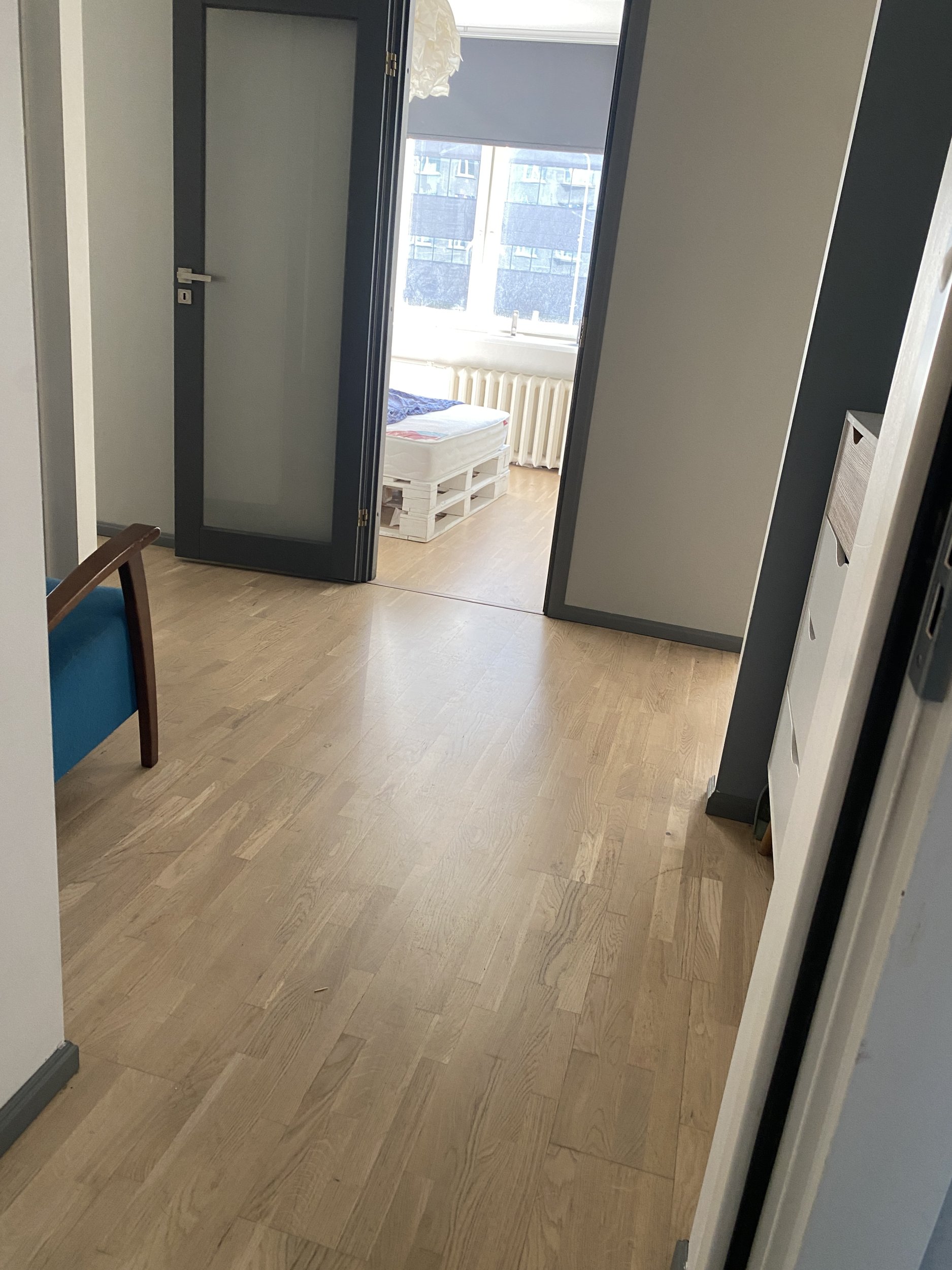 Tallinna Kesklinnas, 2. korrusel, ilma liftita majas, vaja teostada 50 ruutmeetril naturaalsest parketist põrandate hooldus - lihvimine, vahatamine. Välja vajab vahetamist 1 kahjustunud koht 2-3 lippi, eraldi pilt lisatud. Vahetamist vajava lipi ostame ise, muud töö teostamiseks vajalikud materjalid on hankija osa. Objektil ei elata sees, alustada saab kohe, parkida on võimalik tasuta objekti hoovis.