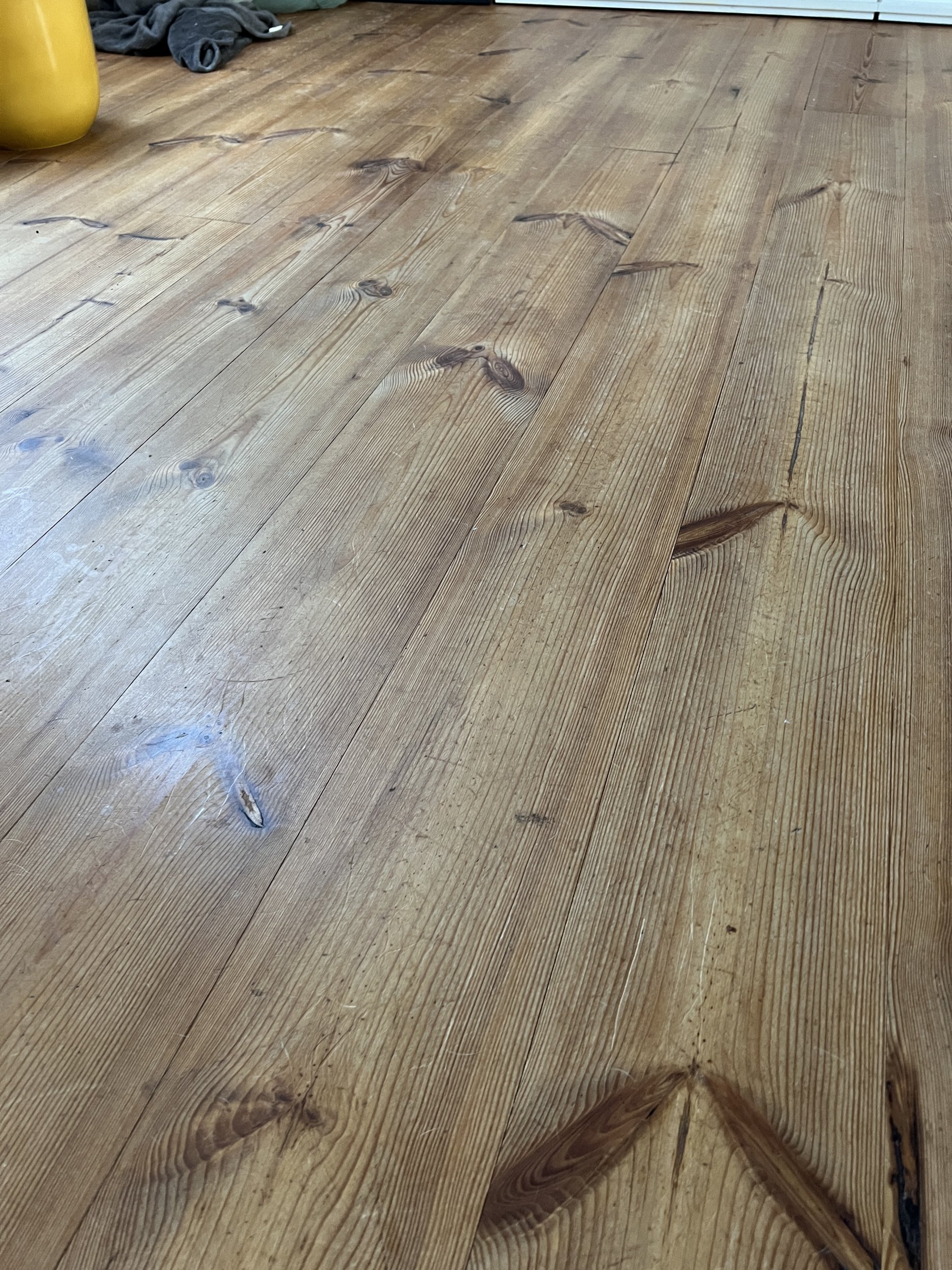 Seisukord on pigem hea. Põrandat on iga-aastaselt õlitatud. Lakki ilmselgelt näinud ei ole. Tegemist on värskenduskuuriga enne müüki. 1 kiht õlivaha paluks.