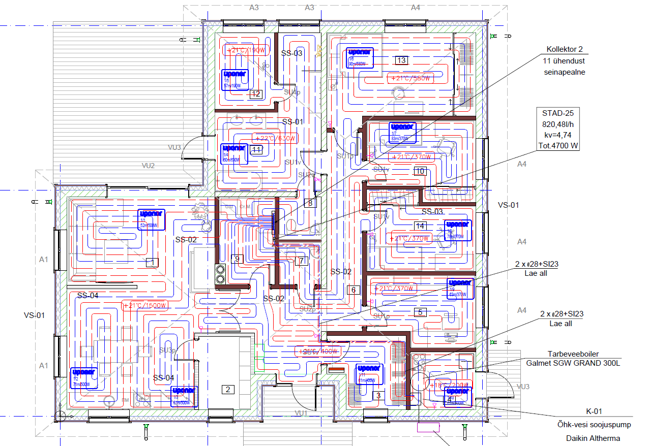 Samuti, oleks vaja paigaldada põrandakütte torustik 11 kontuuri + vesi + soojustus 200mm + kanalisatsioon.