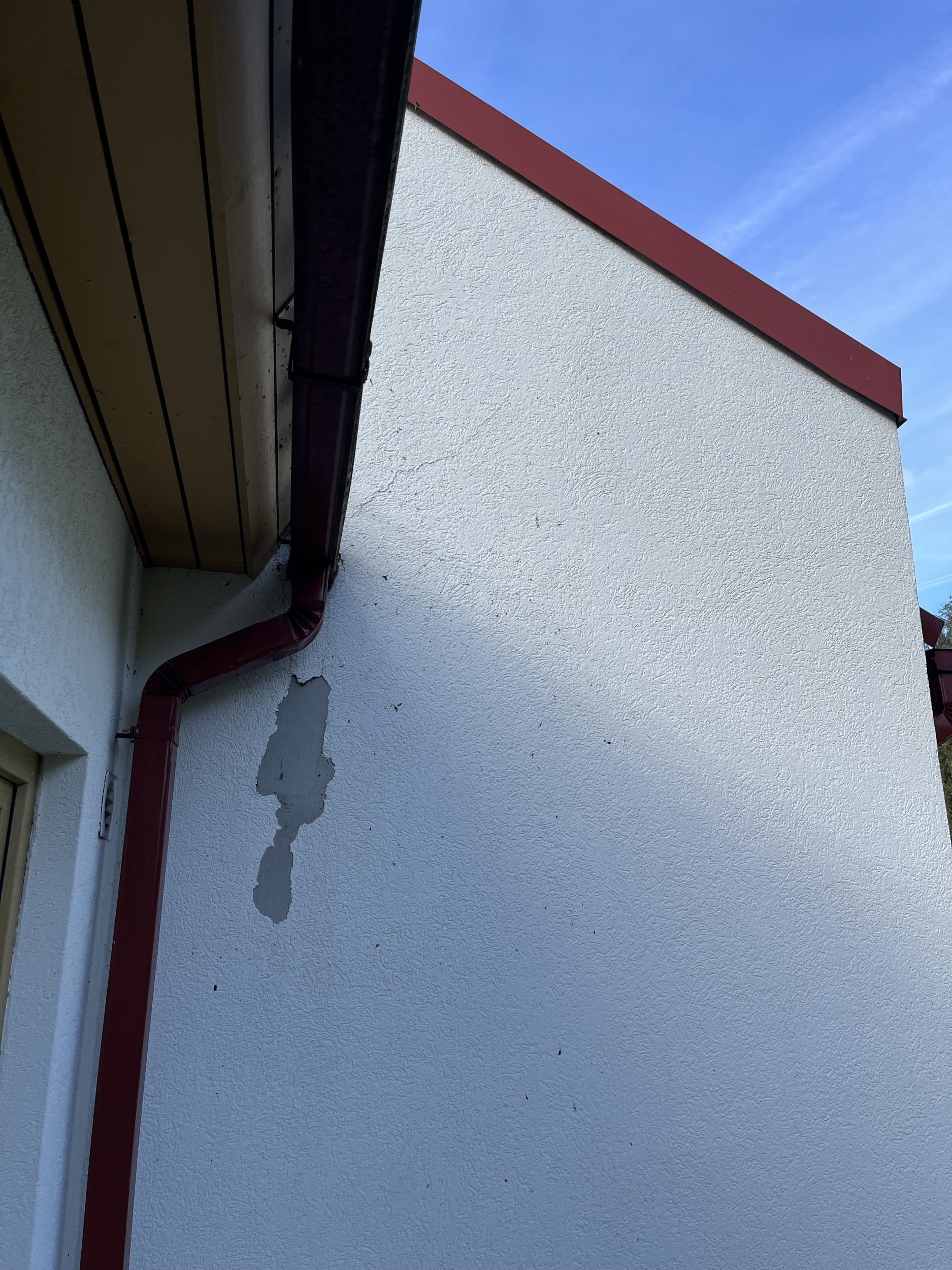 Maja seinal on viimistlus krohv ca 3 mm paksune kiht on ca 1 m2 alal kooruma hakkanud. Aluspind on on vôrk ja liimsegu, mis on peno peal.