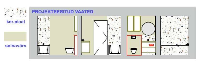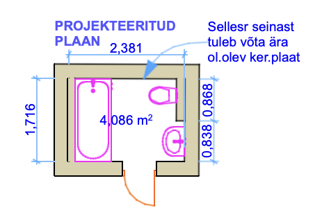 - tasandada mõned seina osad kuhu ei pane keraamilised plaat, vaid tuleb seina värv