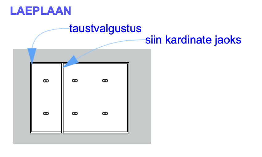 - ripplagi + taustalgustus laes + spot valgustid + siinid kardinale laes (see on optsionaalne, saan ka eraldi tellida)