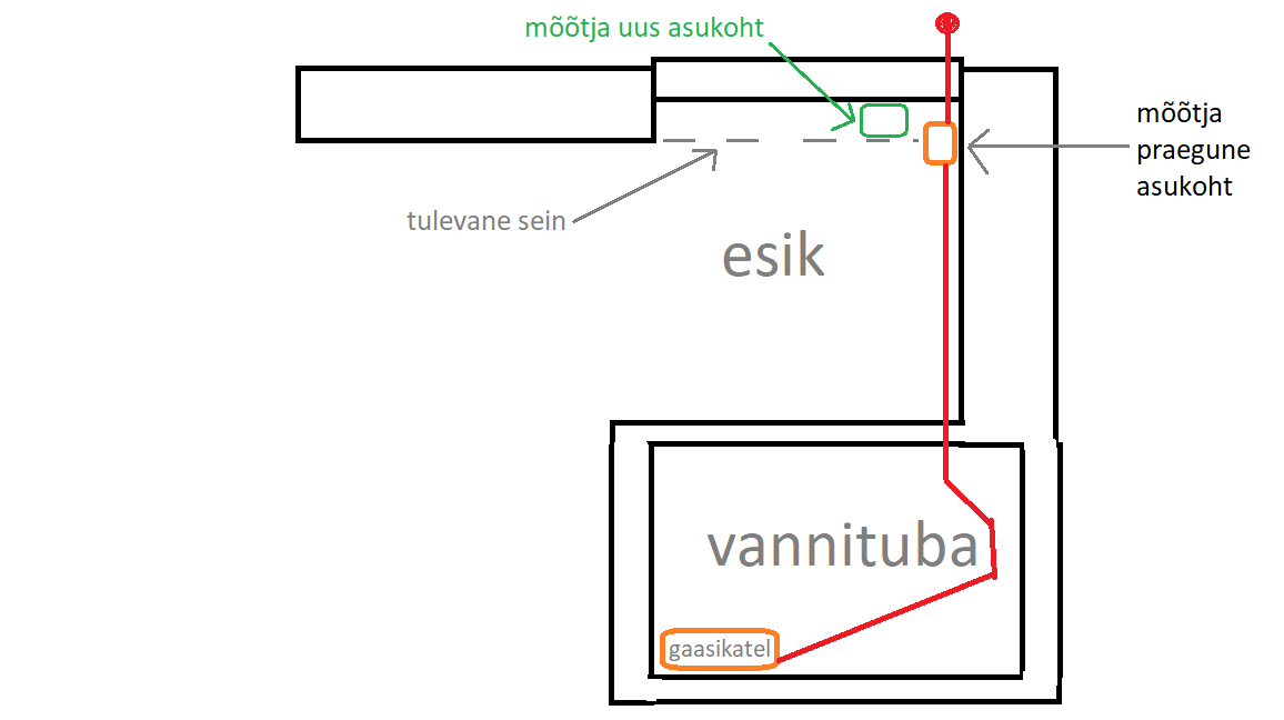 Gaasimõõtjaon tarvis liigutada teise seina (skeem ja pildid manuses).
