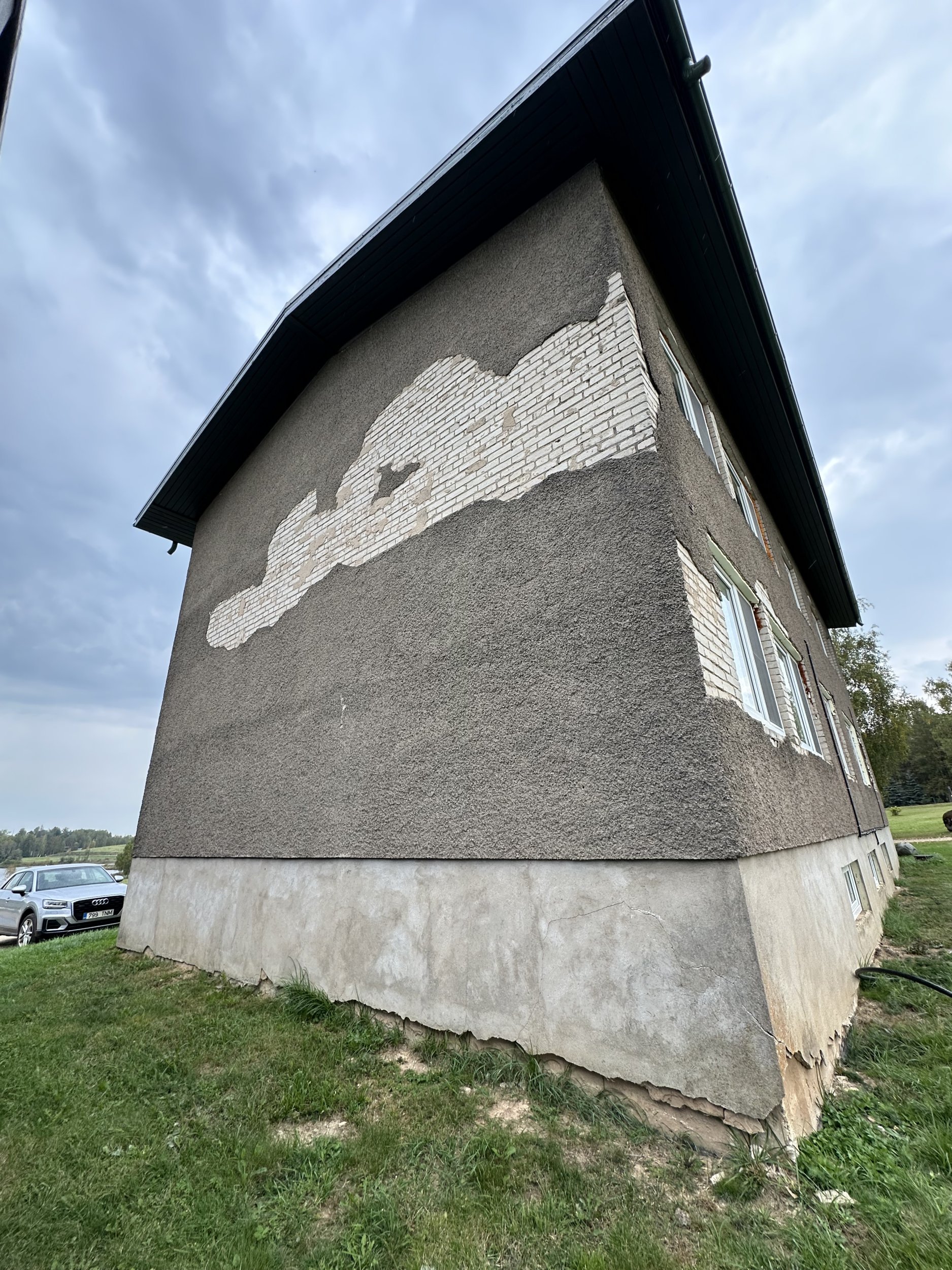 Tööde kirjeldus: Kilega kinni katta kõik aknad, akende ümbert eemaldada vana vaht vuugitäide; puhastada vuugid ning uuesti vahuga täita; kõik aknad teipida tuuletõkketeibiga; akna paled krohvida ca 155jm; fassaadi krohviparandused ca 18m2, sokli krohvi parandused ca 5m2, värvida 2x fassaad: 265m2; värvida 2x sokkel: 56m2.