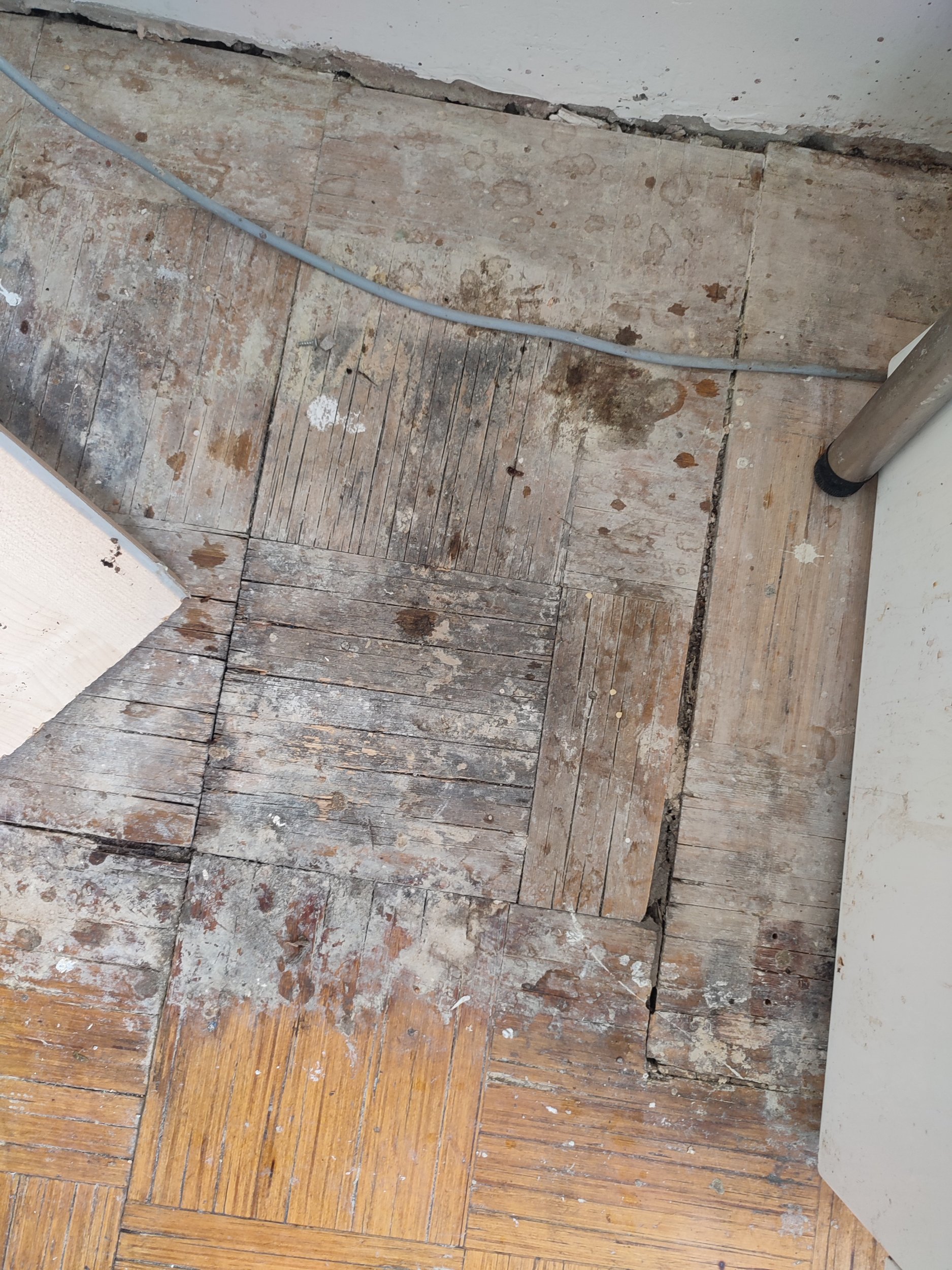 Tõenäoliselt tuleb veel lammutada - osa seina pude, laminaatparketi alt tuli välja vana puitparkett, mis on osaliselt veekahjustustega (vt pilte).