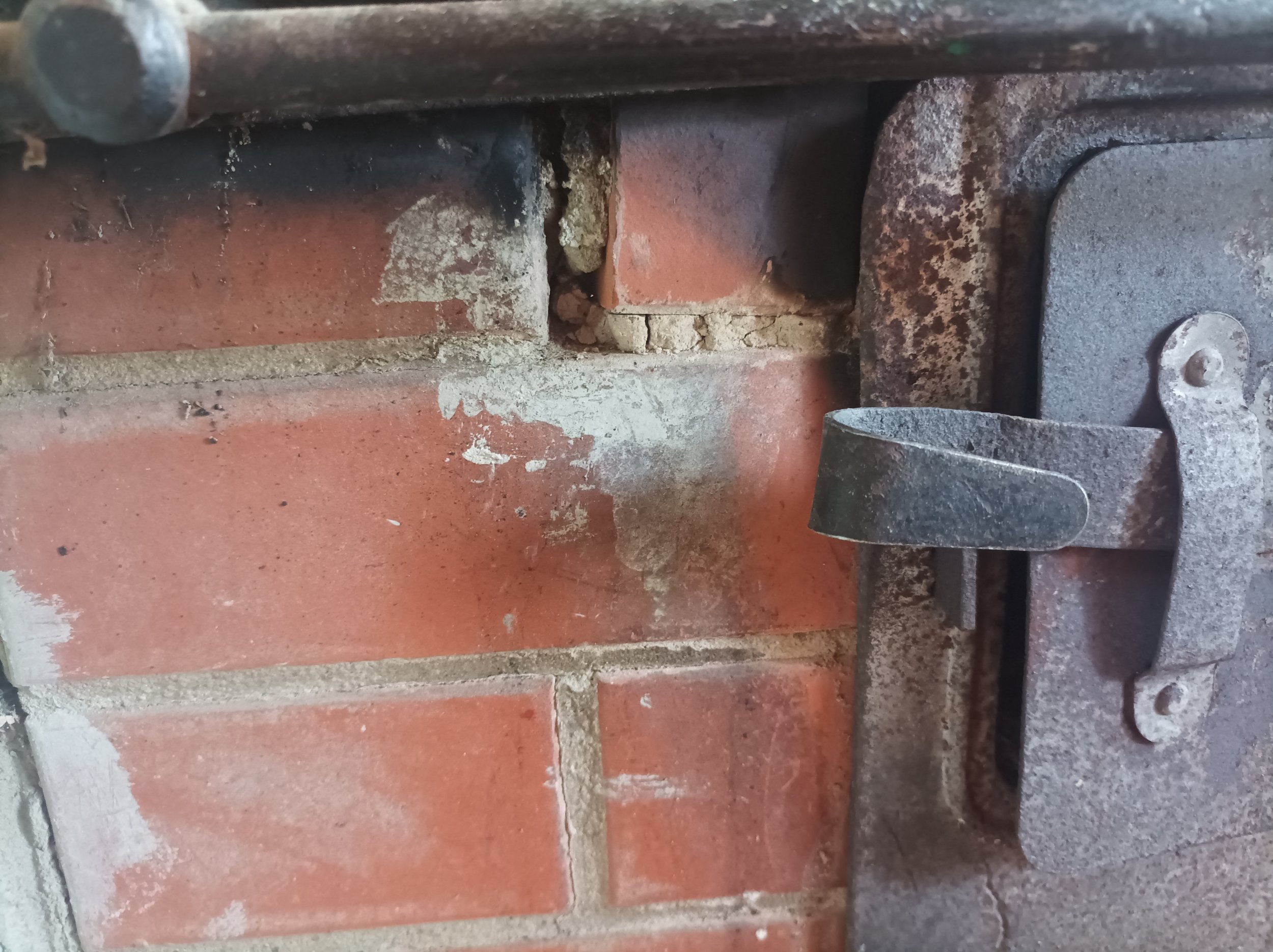 Lisaks on vaja seguga parandada seinas suur pragu (näha pildil) ja kõrvalruumis asuval pliidil esiukse juurest väike pragu kahe tellise vahel.