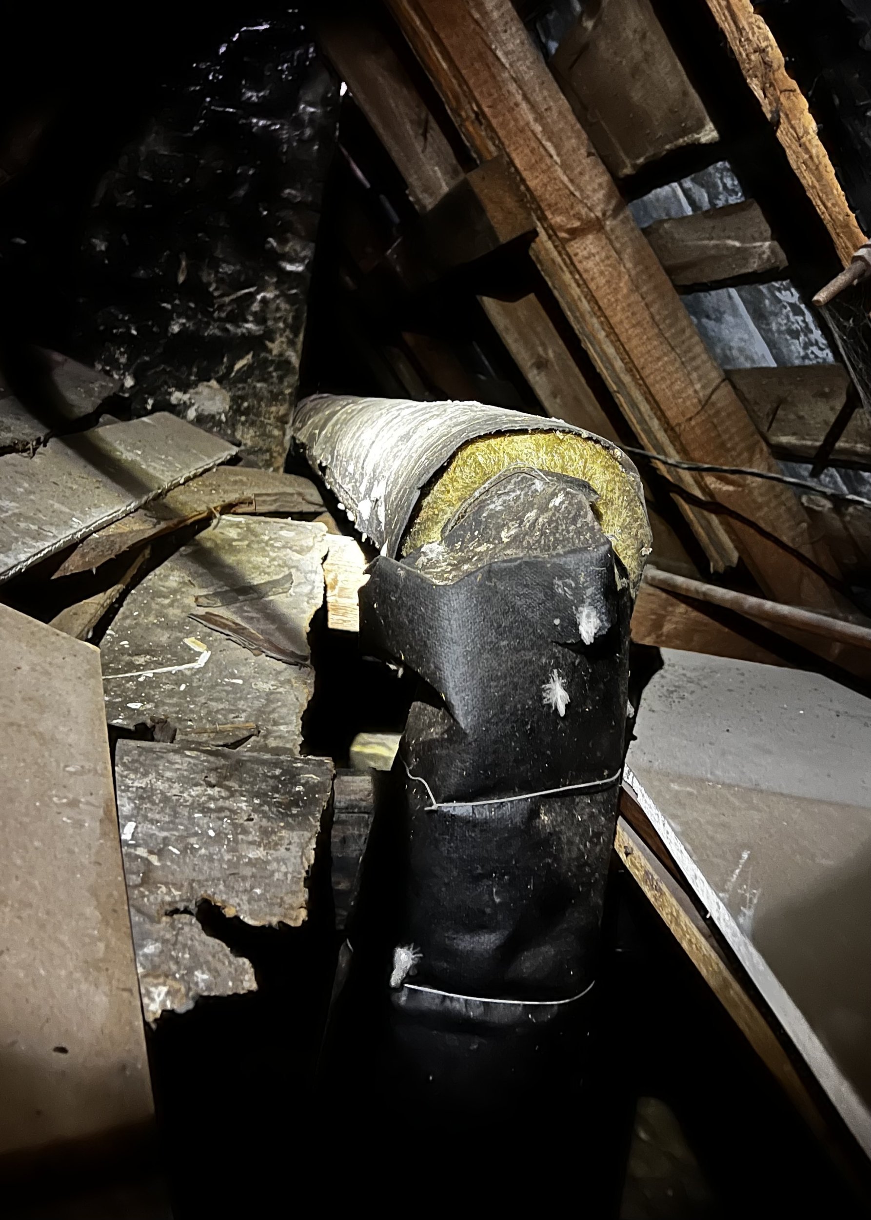 Olemasolev kanalisatsiooni tuulutustoru on paigaldatud s-kujuliselt ning lõpeb korstnas. Paistab olevat metallist toru. Toru tuleks läbi lõigata, ning juhtida otse üles katusele, lisaks katusele paigaldada läbiviik, tuulutus korsten jms vajalik.