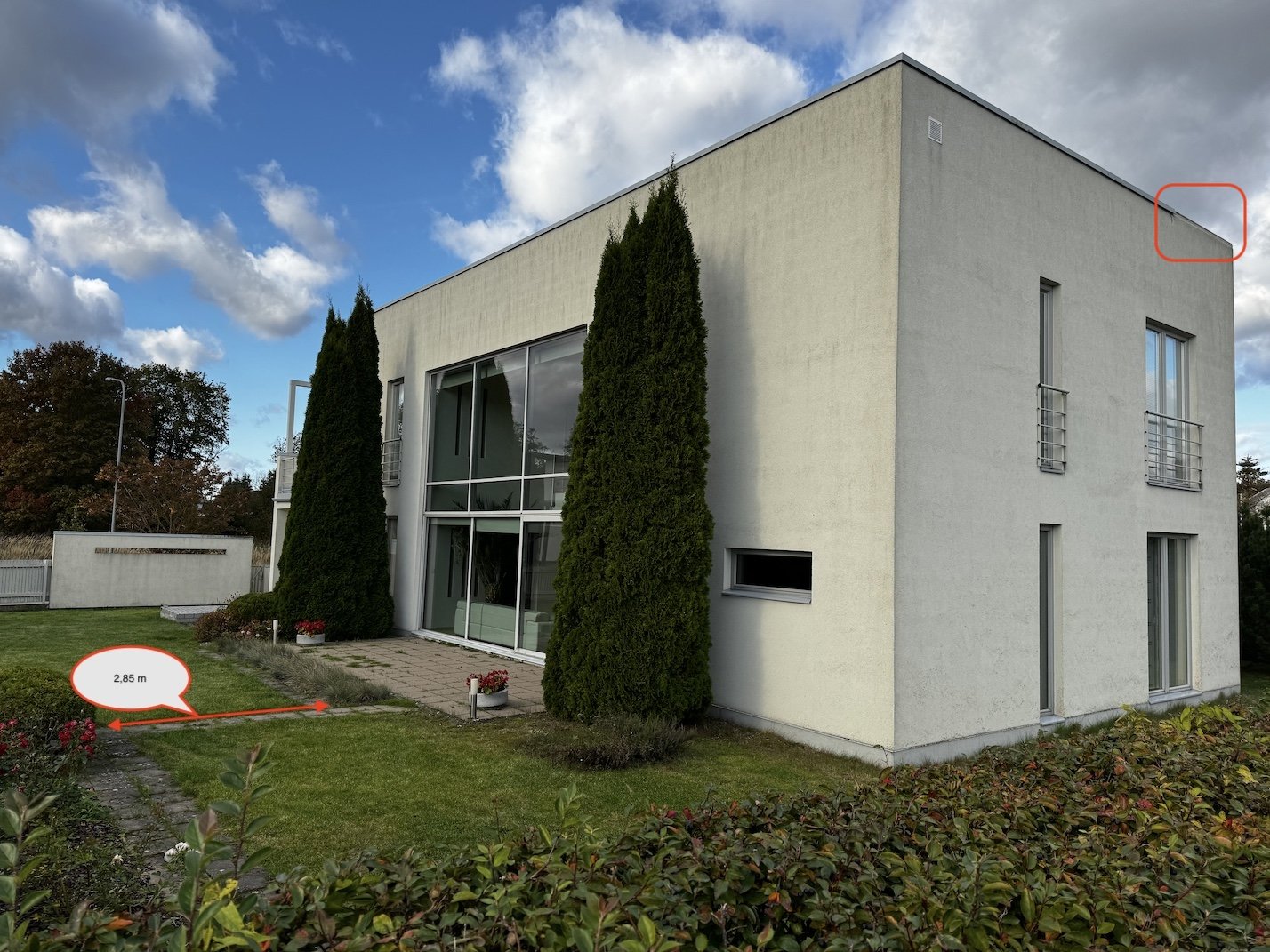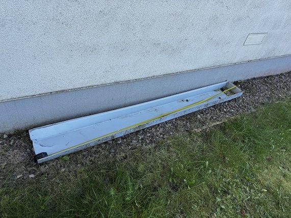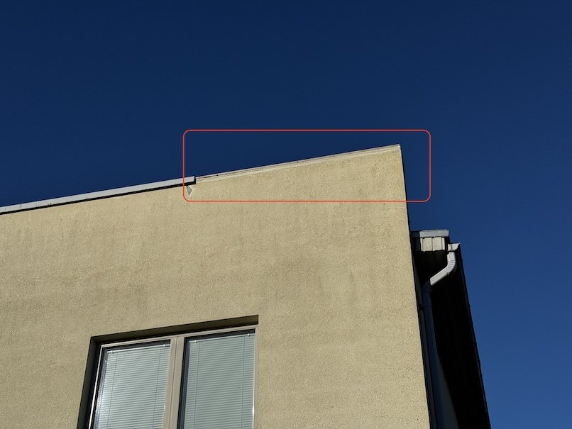 Tuul on lõhkunud osa katuse parapeti plekist. Eemaldunud plekitüki pikkus on 2,3 meetrit. Oleks vaja parapetiplekk taastada. Pleki asukoht on eramu katusel. Eramu kõrgus on 7 meetrit.