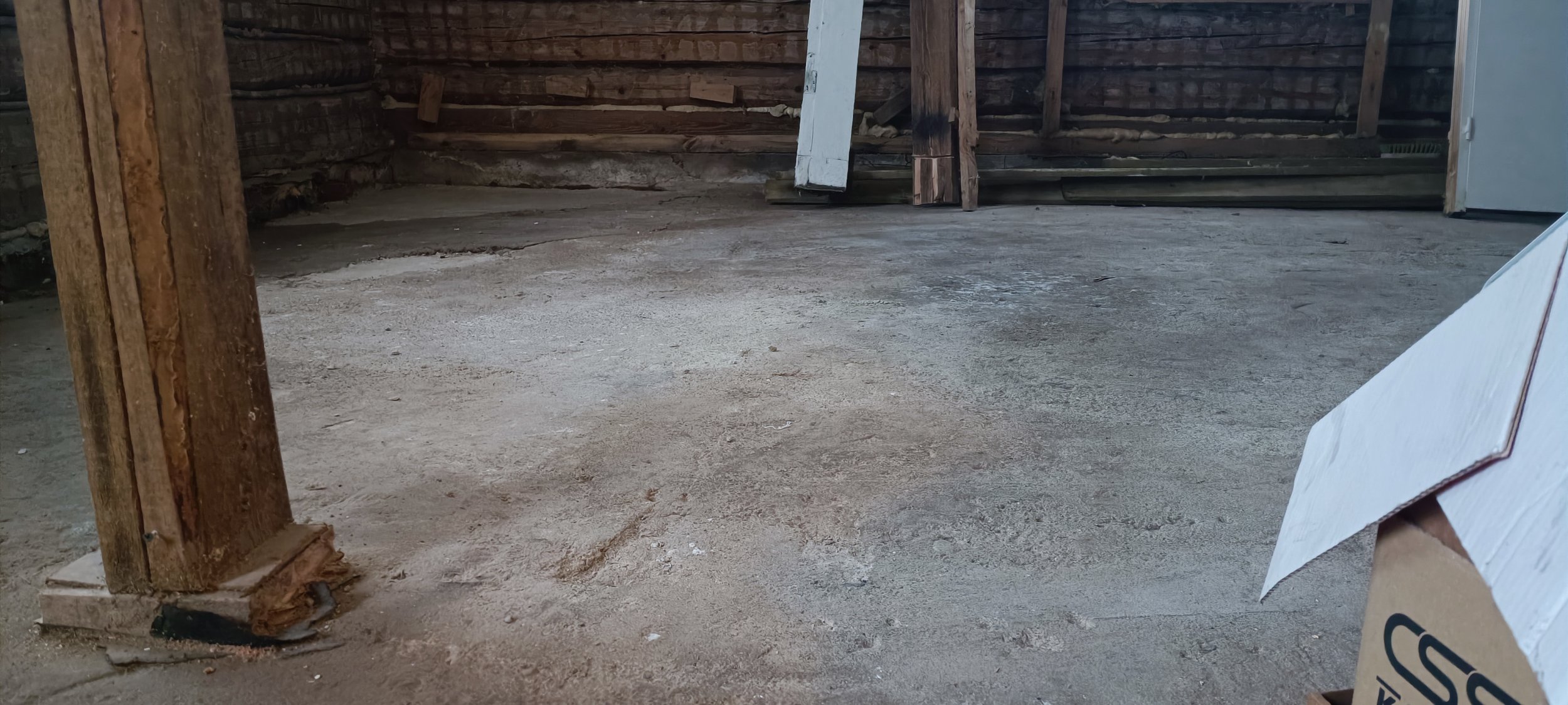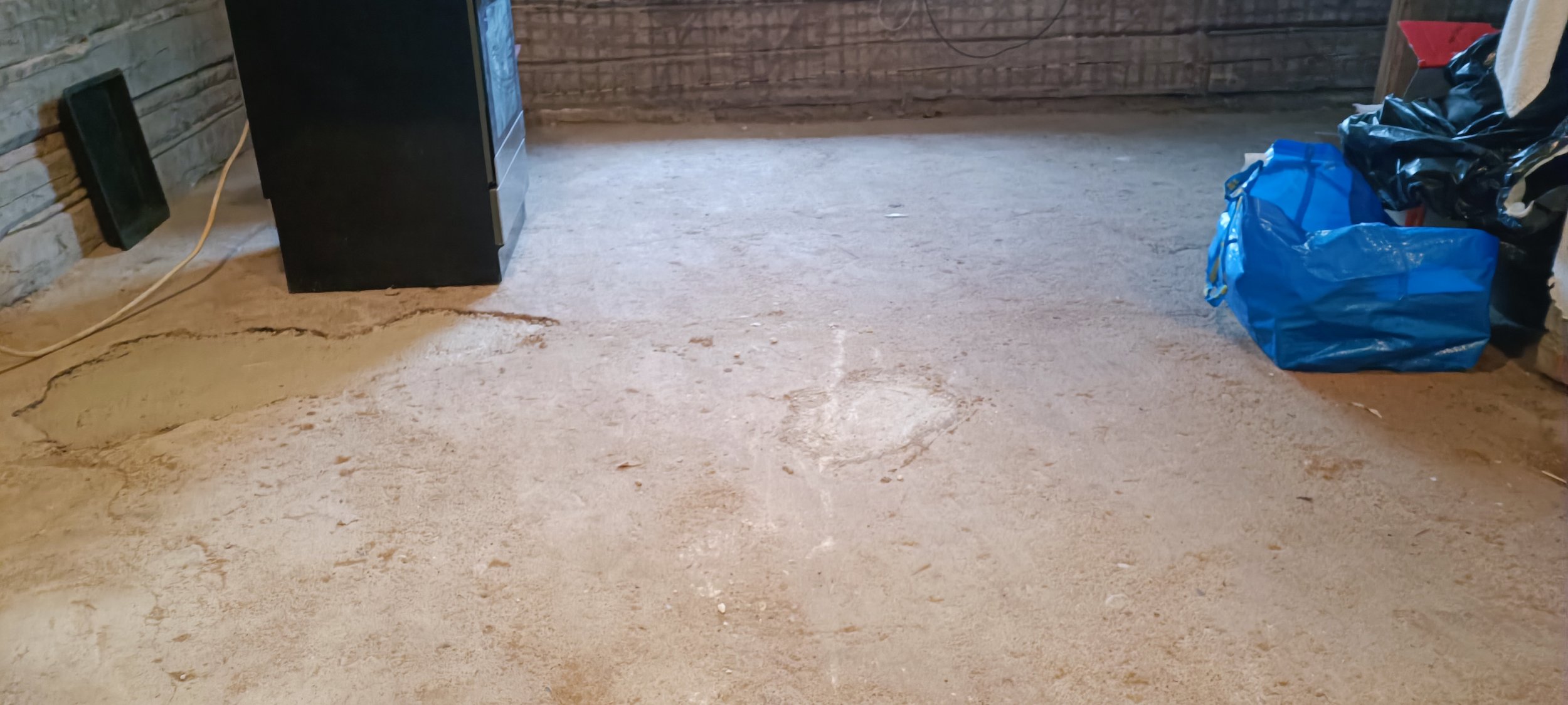- Ühe toa nurgast on põrand/maapind vajunud hiirte uru/pesa tõttu. Kaamera peale raske saada, aga koha peal olles on langust selgelt näha. Seal sai veidi kaevatud, täidetud killustiku ja liivaga ning lapitud. Aga peaks selle ka tasaseks saama.