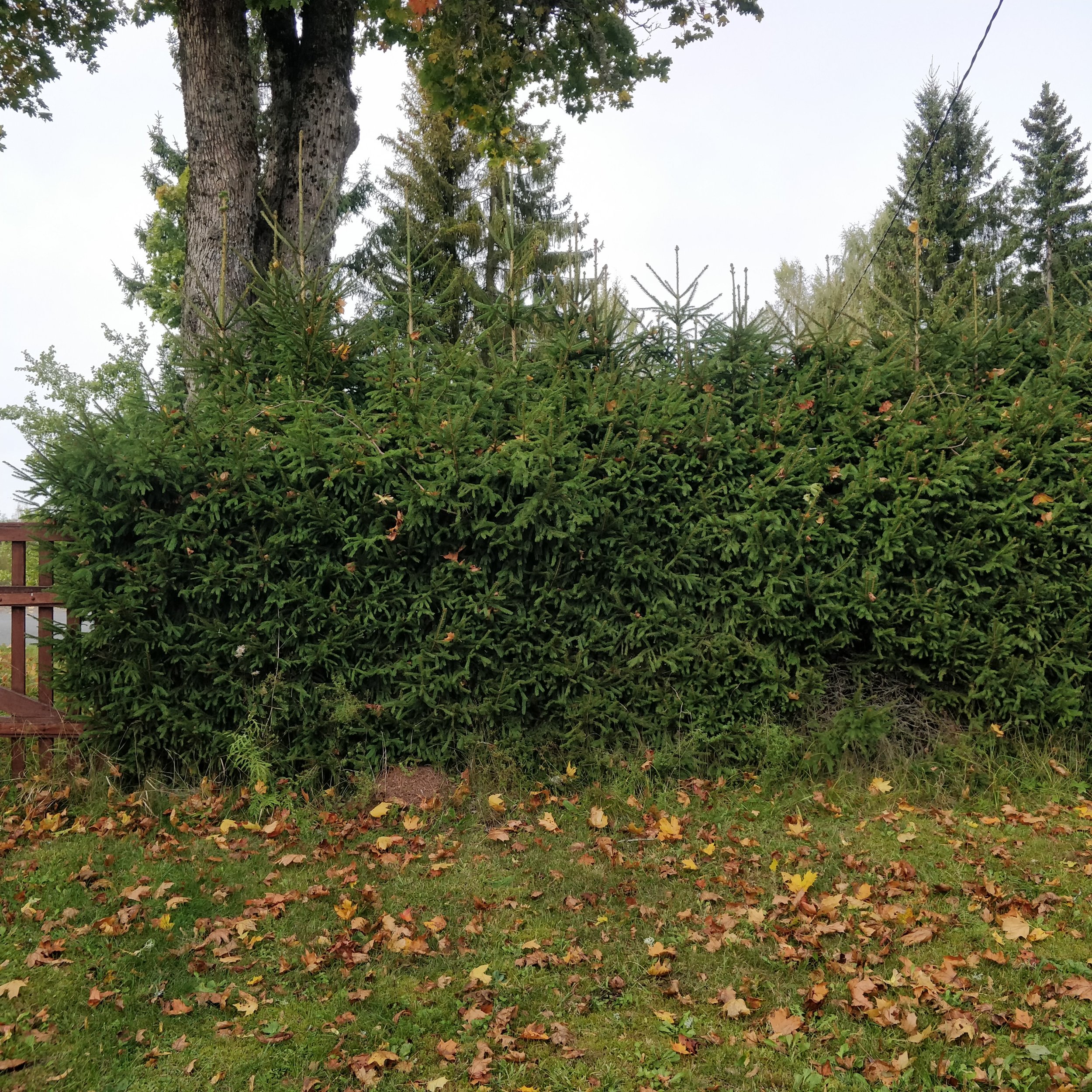 Vana väljakasvanud kuuseheki pügamine, viimati pügatud 3 aastat tagasi, pikkus umbes 70 m, kõrgus 2,5, okste äravedu ei vaja, ainult lõikus, ülevalt ja küljelt,
