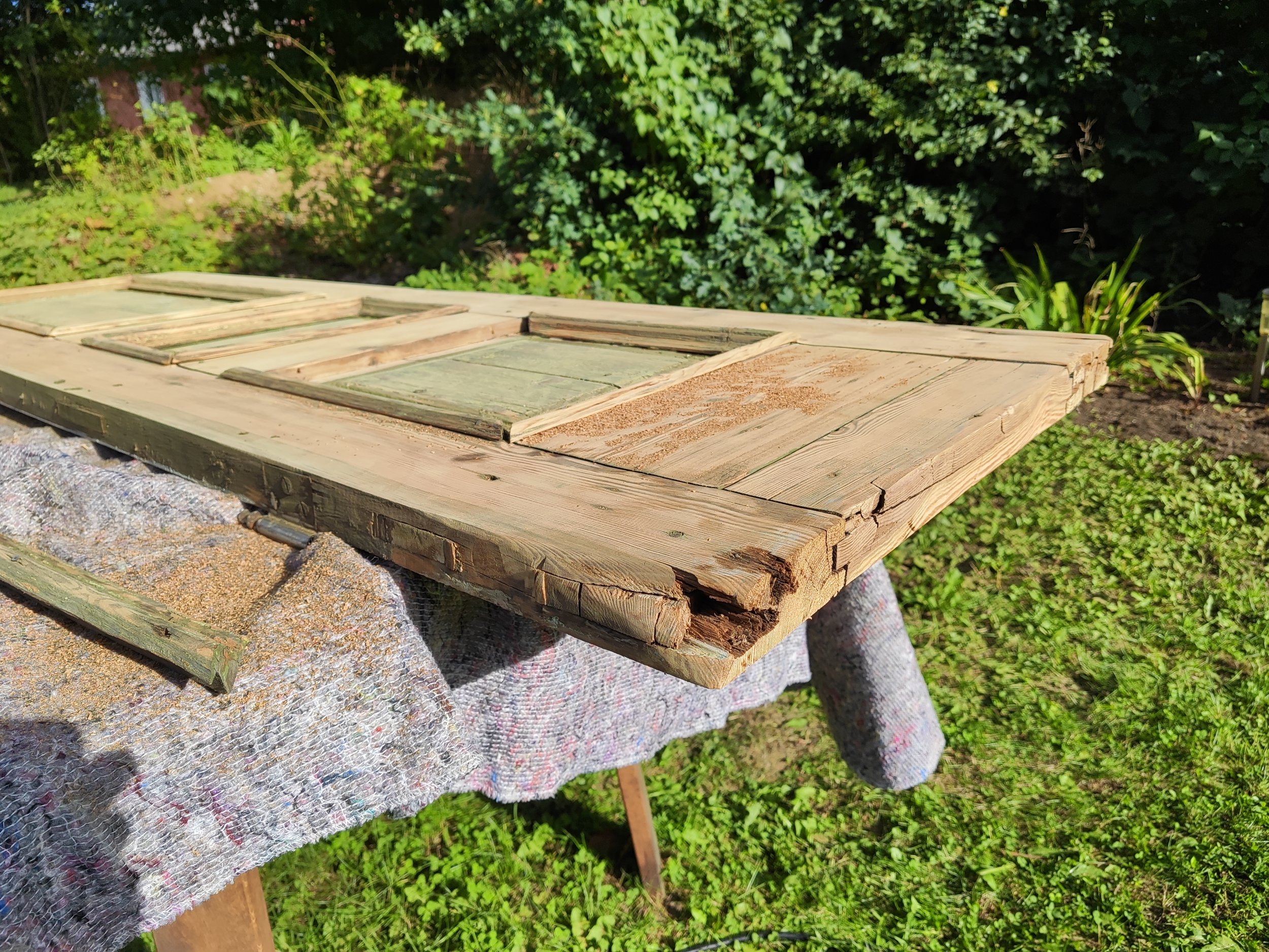 Olen uksed ise puhastanud väljast ja tõmbasin ajutiselt üle valge peitsiga.