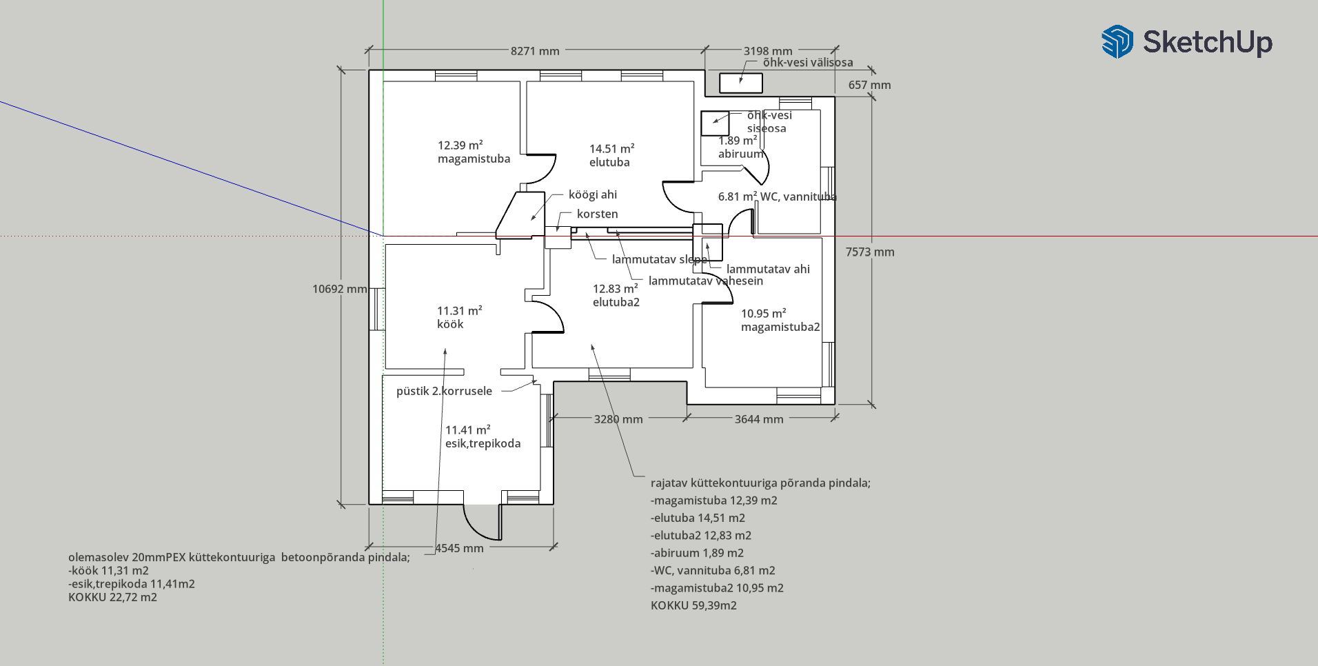-laagpõrand-rajatav betoonpõrand elektri ja vesiküttekontuuriga elutuba2, elutuba, magamistuba 39,73m2