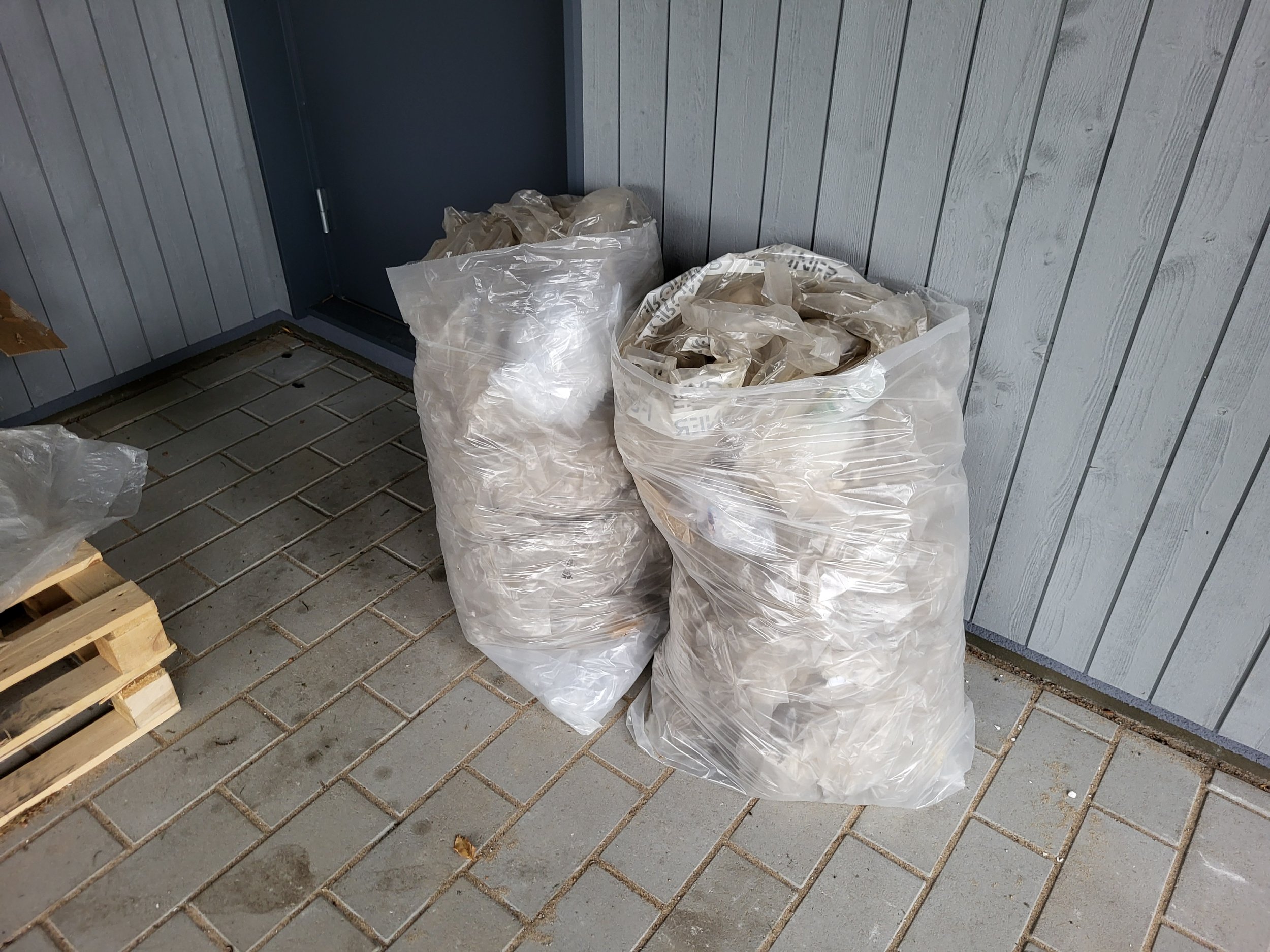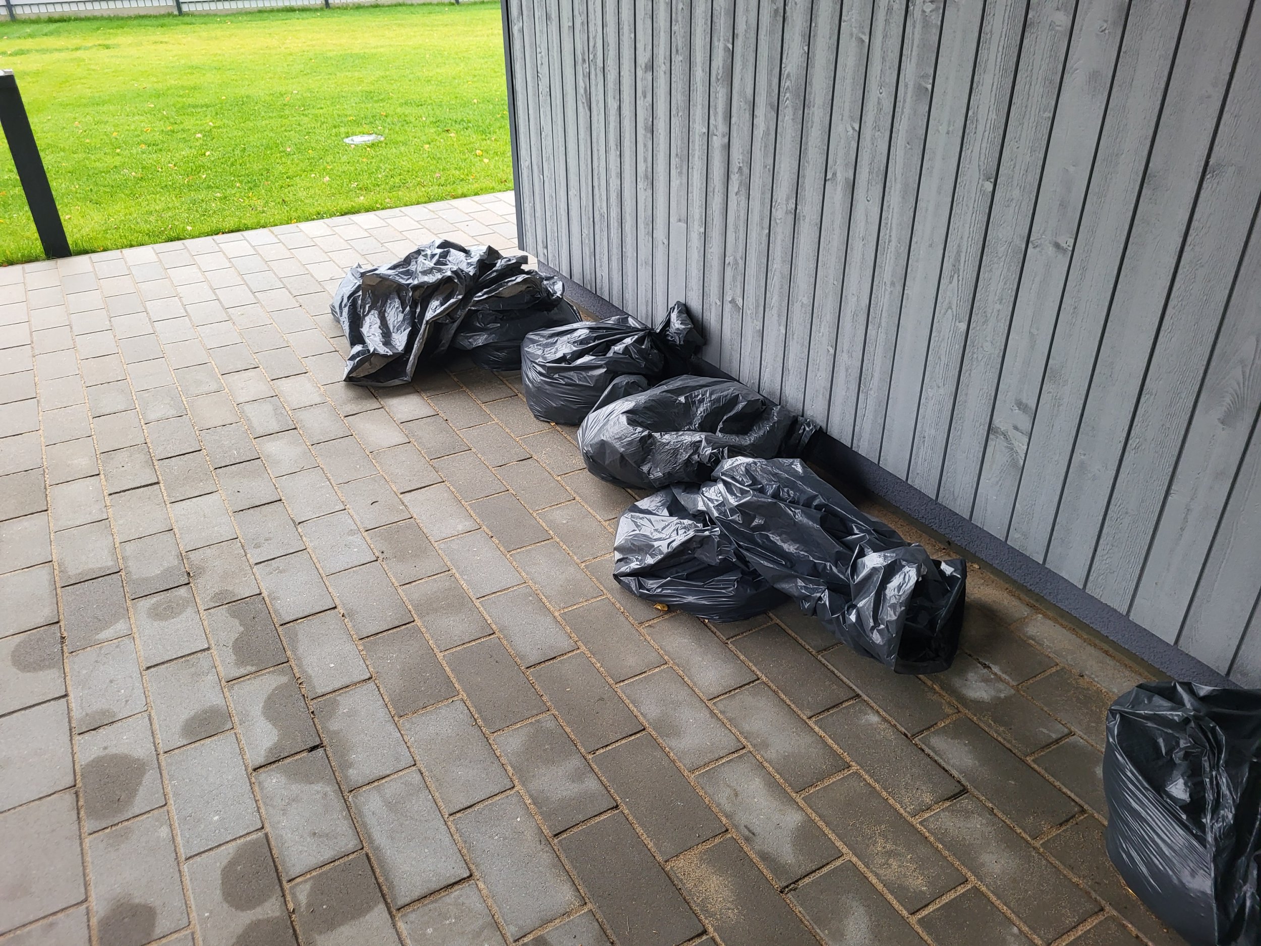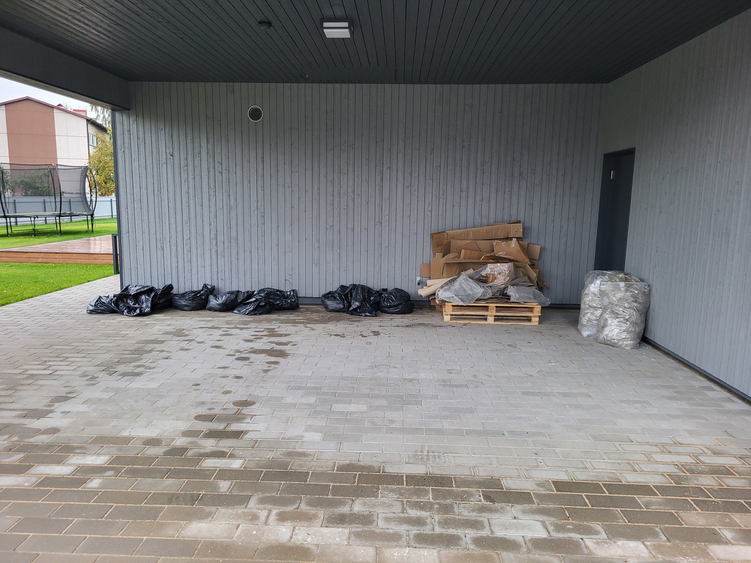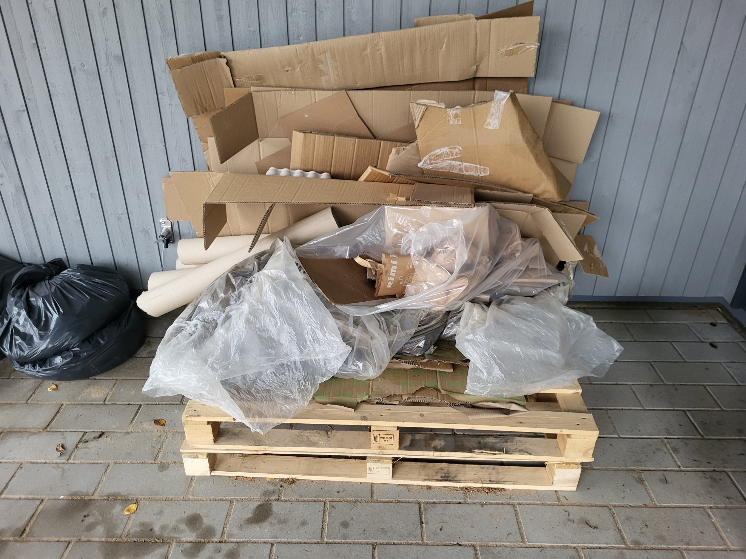 Piltidel olevate jäätmete äravedu - kaks euroalust, papp, kaks kotti pakendikiledega ja ca 10 kotti aiajäätmetega (valdavalt muld).
