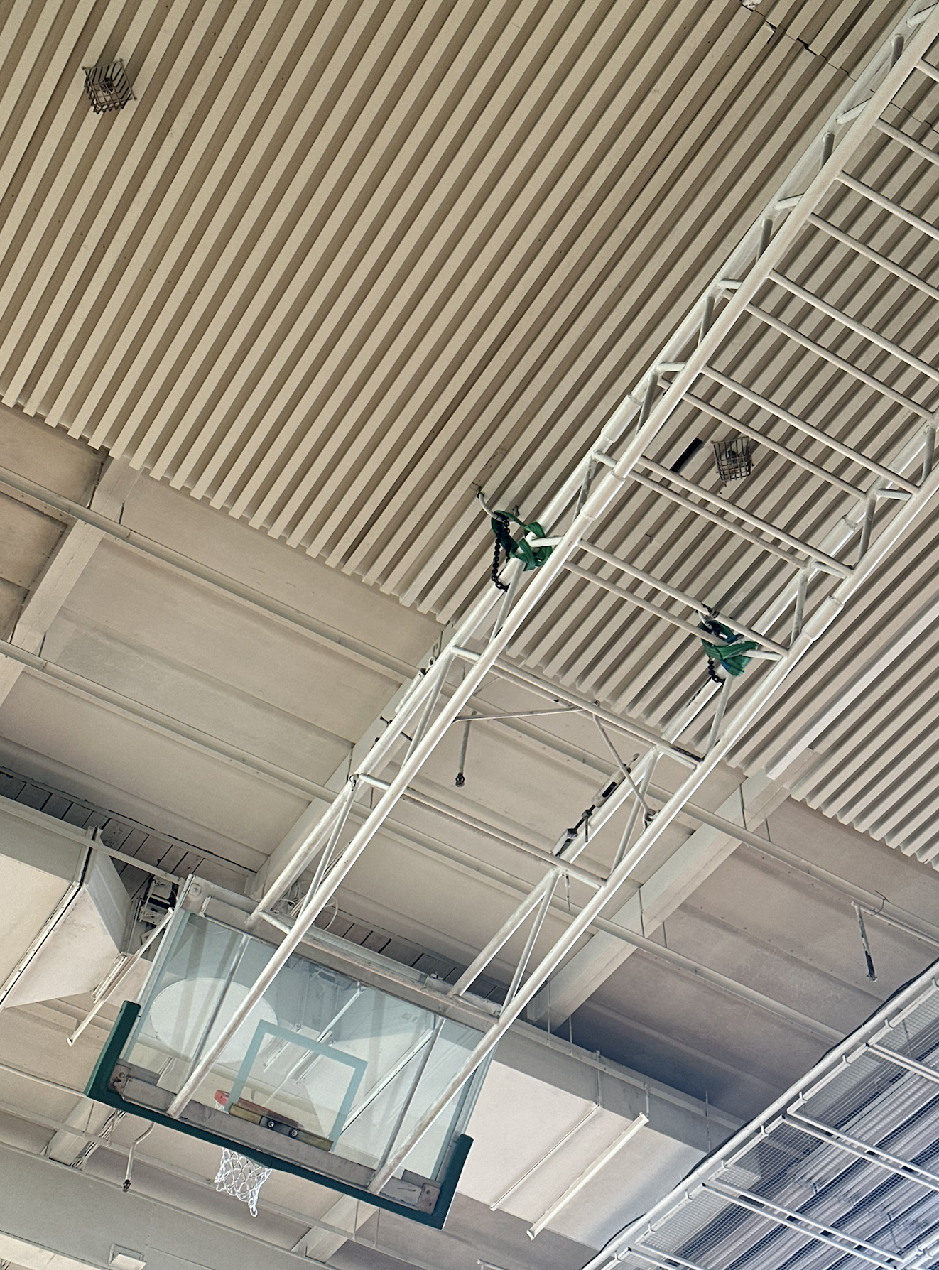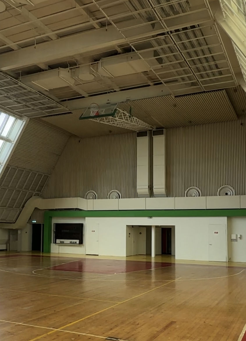 Vaja on alla langetada ja fikseerida lae alla kinnitatud korvpallikonstruktsioon (1). Üles tagasi panema ei pea. Korv peab olema piisavalt tugevalt fikseeritud, et visata. Koha peal puuduvad originaalsed tugitrossid jm kinnitusvahendid. Vajadusel küsi lisainfot!