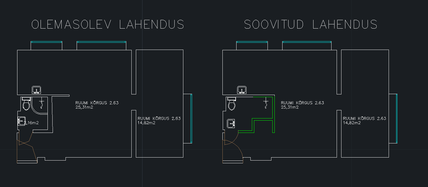 Korteri täielik renoveerimine, kaasas selgitavad joonised ja pildid tänasest olukorrast.