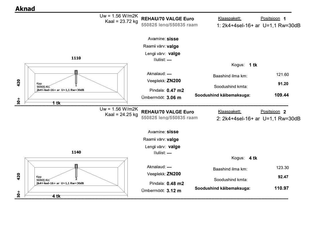 Hind sisaldab kõiki töid ja materjale, põskede viimistlus ei sisaldu hinnas. Ettemaksu arvestatakse ainult akende eest. Tellija tasub töö eest tööde lõpetamisel. |