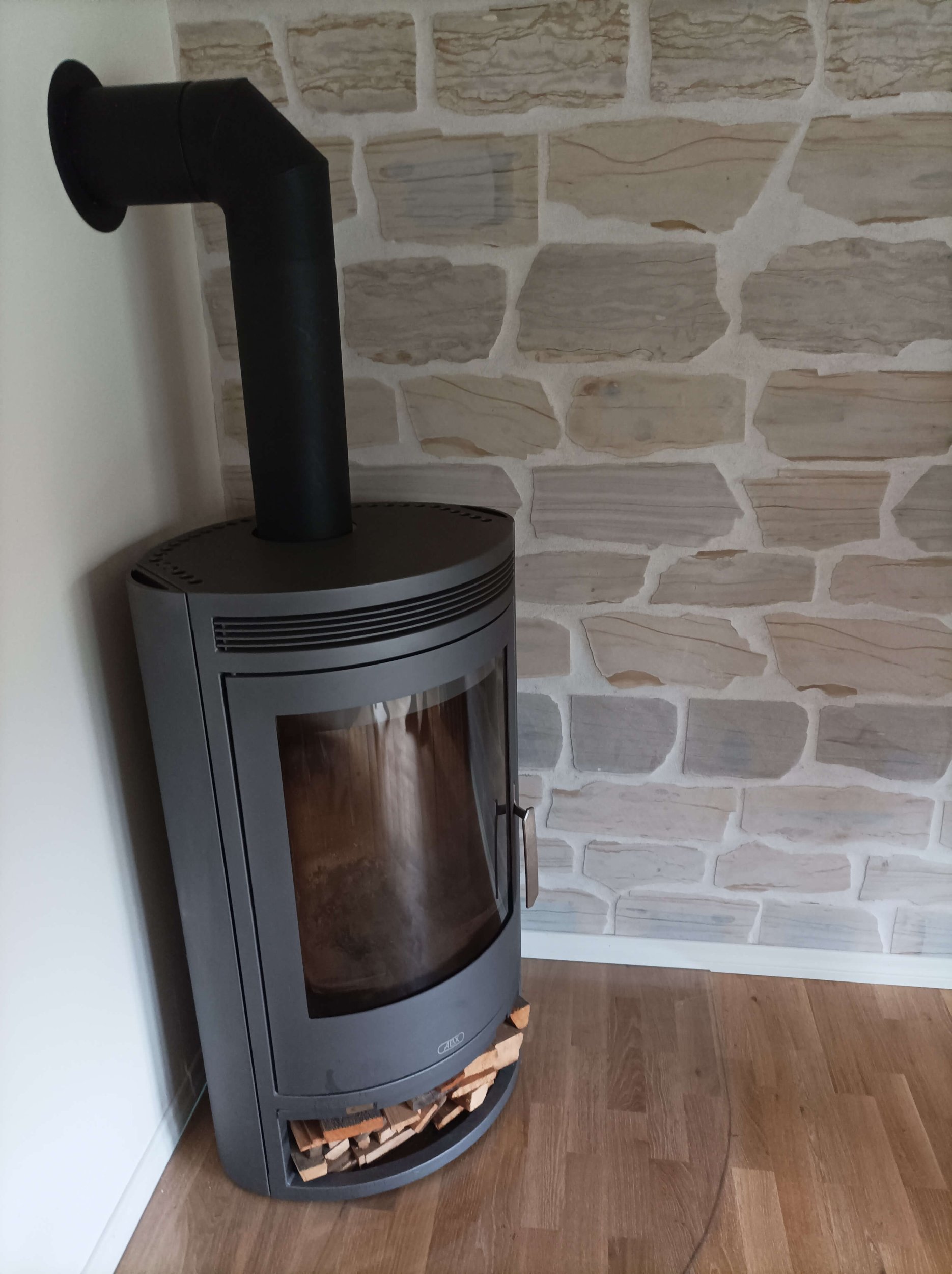 6,5KW ostetud K Rauast.Küljesein 15cm fibo,tagasein plekkkarkass vahe täidetut 6,5cm rockwooli kivivillaga,peal kipsplaat viimistletud 10mm ungru paekiviga.