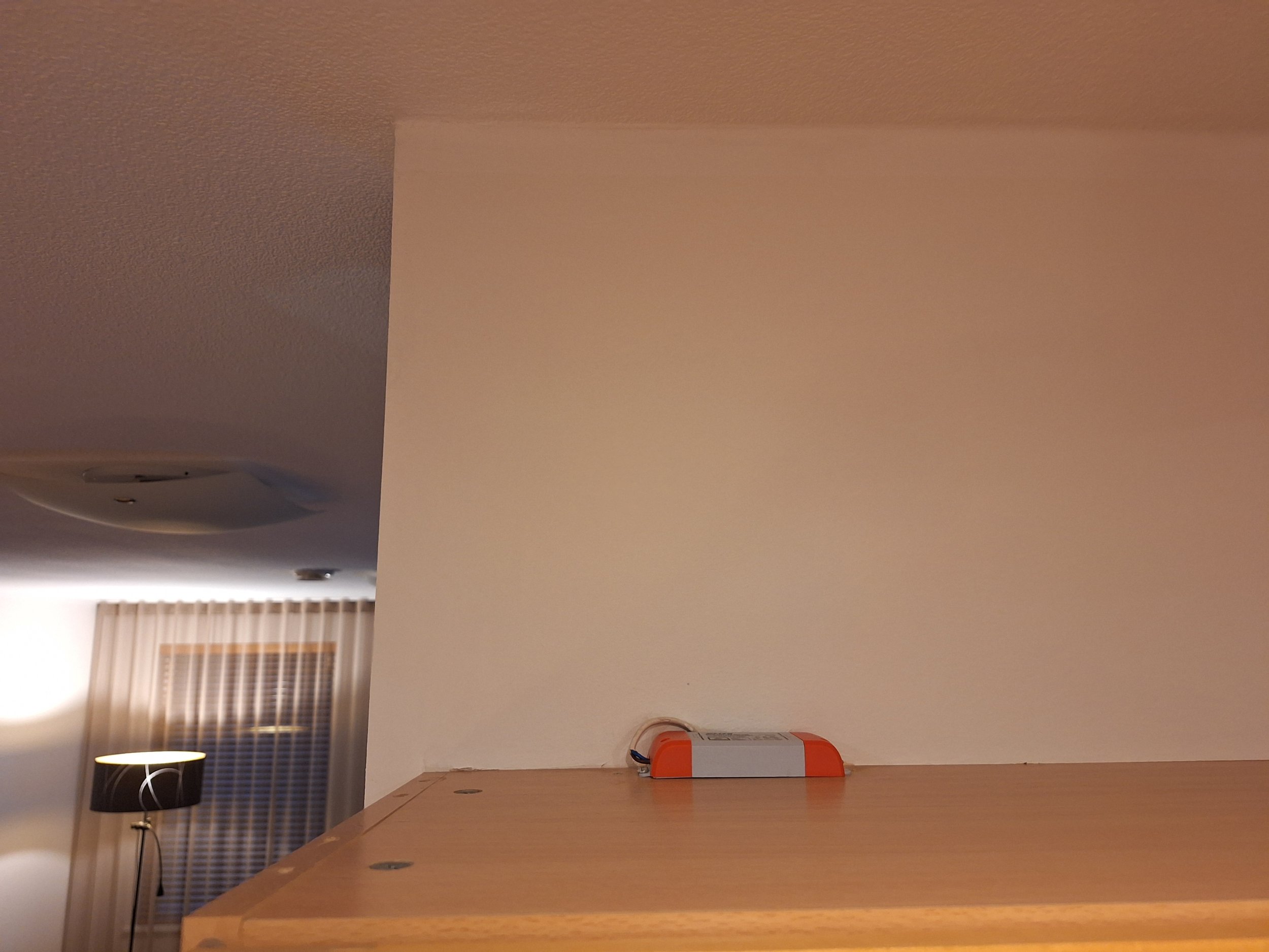 Paigaldada kaks laevalgustit, kus elektrijuhtmed tuleb vedada kipslae alt. Paigaldada üks põrandakütte termostaat. Termostaat on olemas aga ühe eelneva töö käigus kadus elektrikul põrandaküttekaabel seina sisse ära(termostaadipesa u. 20cm. põrandast) ja inimesel oli nii kiire, et lahkus seda üles leidmata.