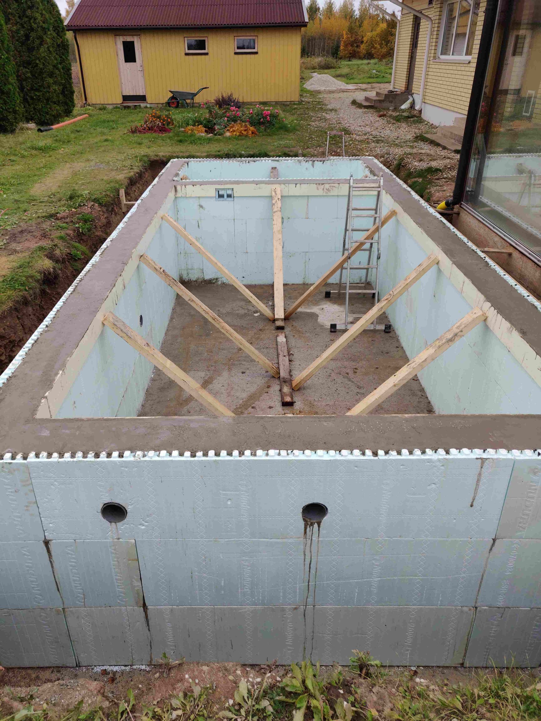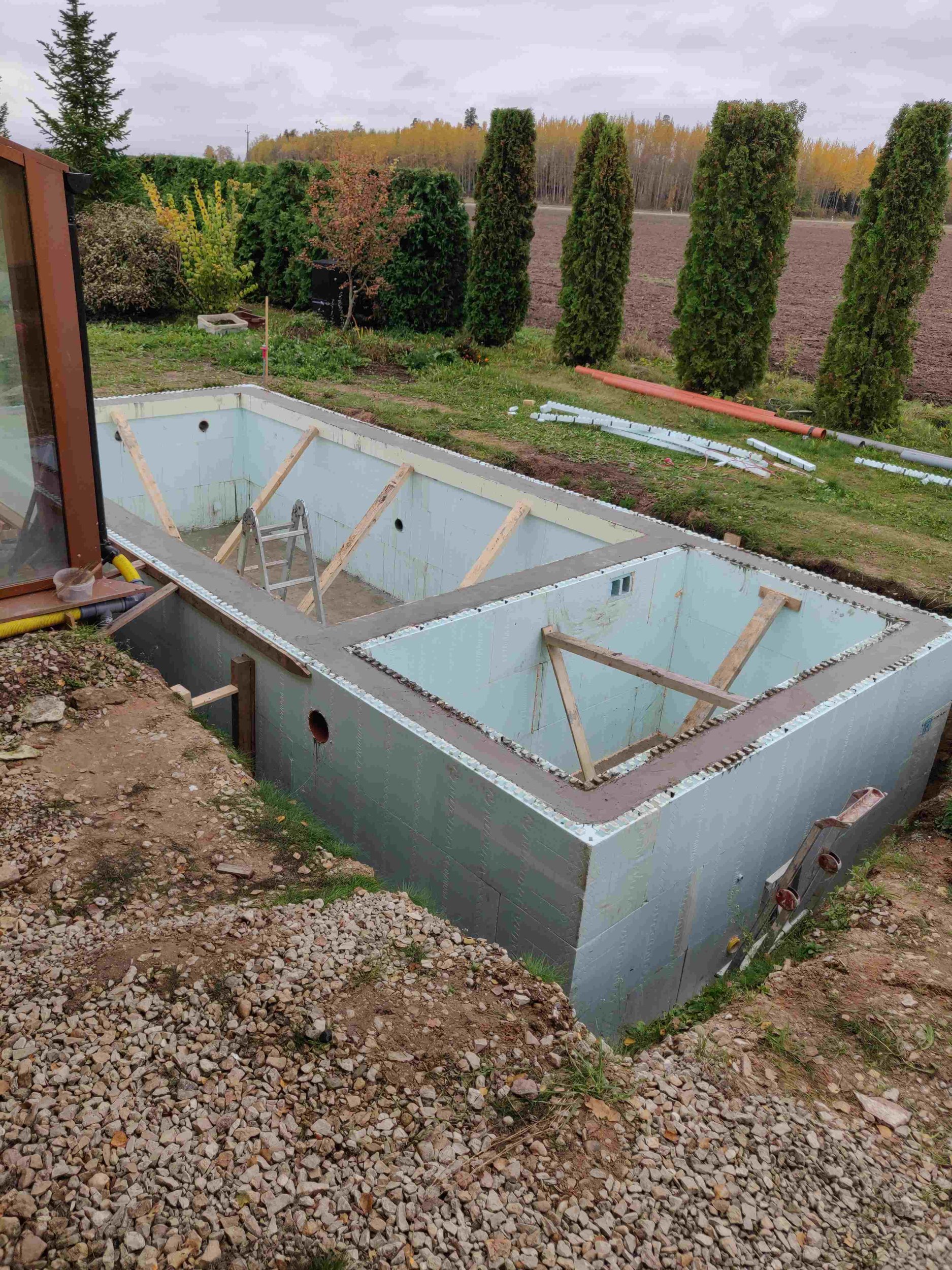 Basseini penoplastist seinad 1,4m krohvida armatuurvõrgu ja krohviga Mira 5300 21,5m2 . Töö ajal sademete eest kaitsta koormakattega.