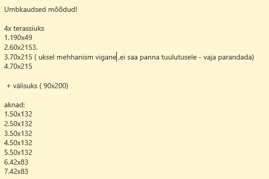 1x Rõduuks vajab ka remonti. Ust ei saa panna tuulutusasendisse,
