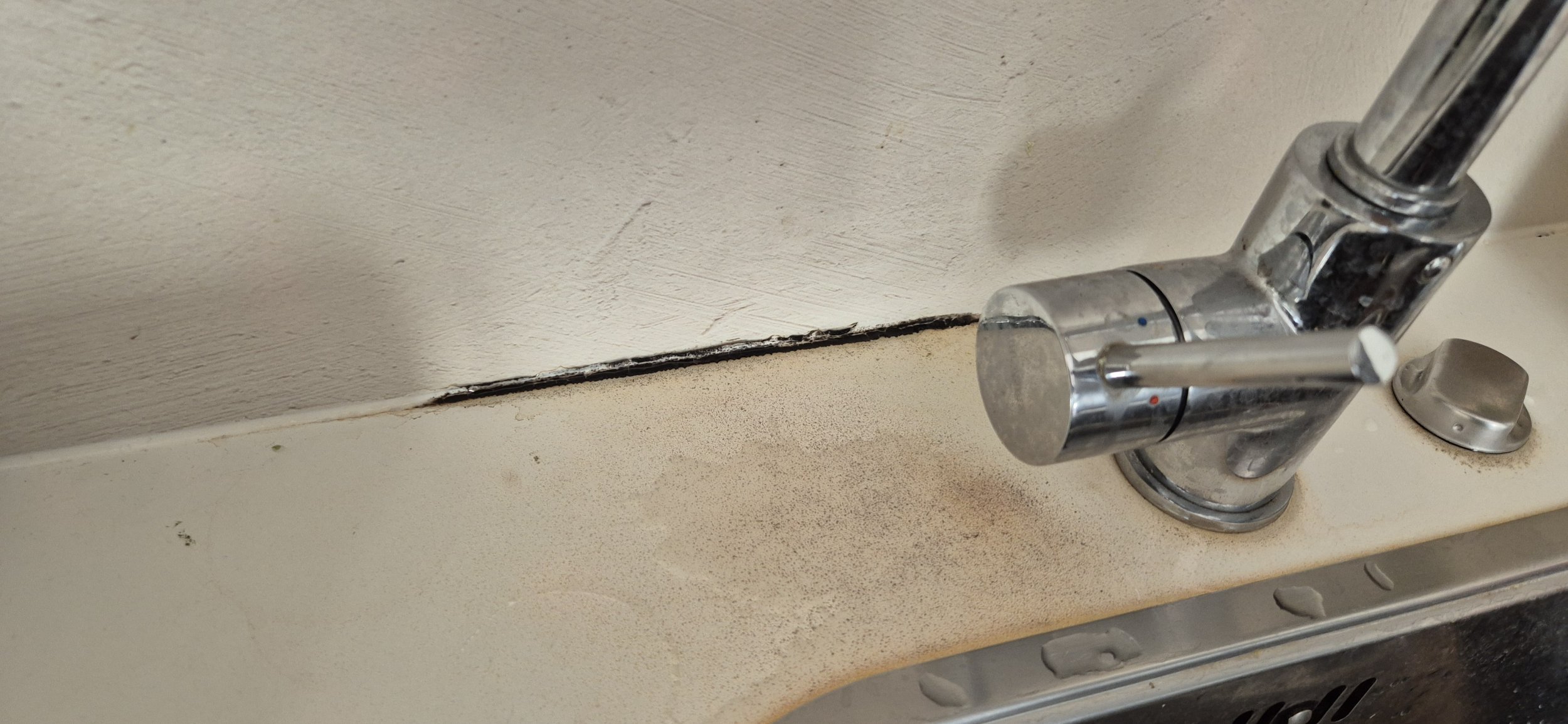 Lisaks on köögi kraani juures sama probleem. Köögiseina laius kokku ~3 m, probleemne on ainult kraani juurest. Lisatud foto.