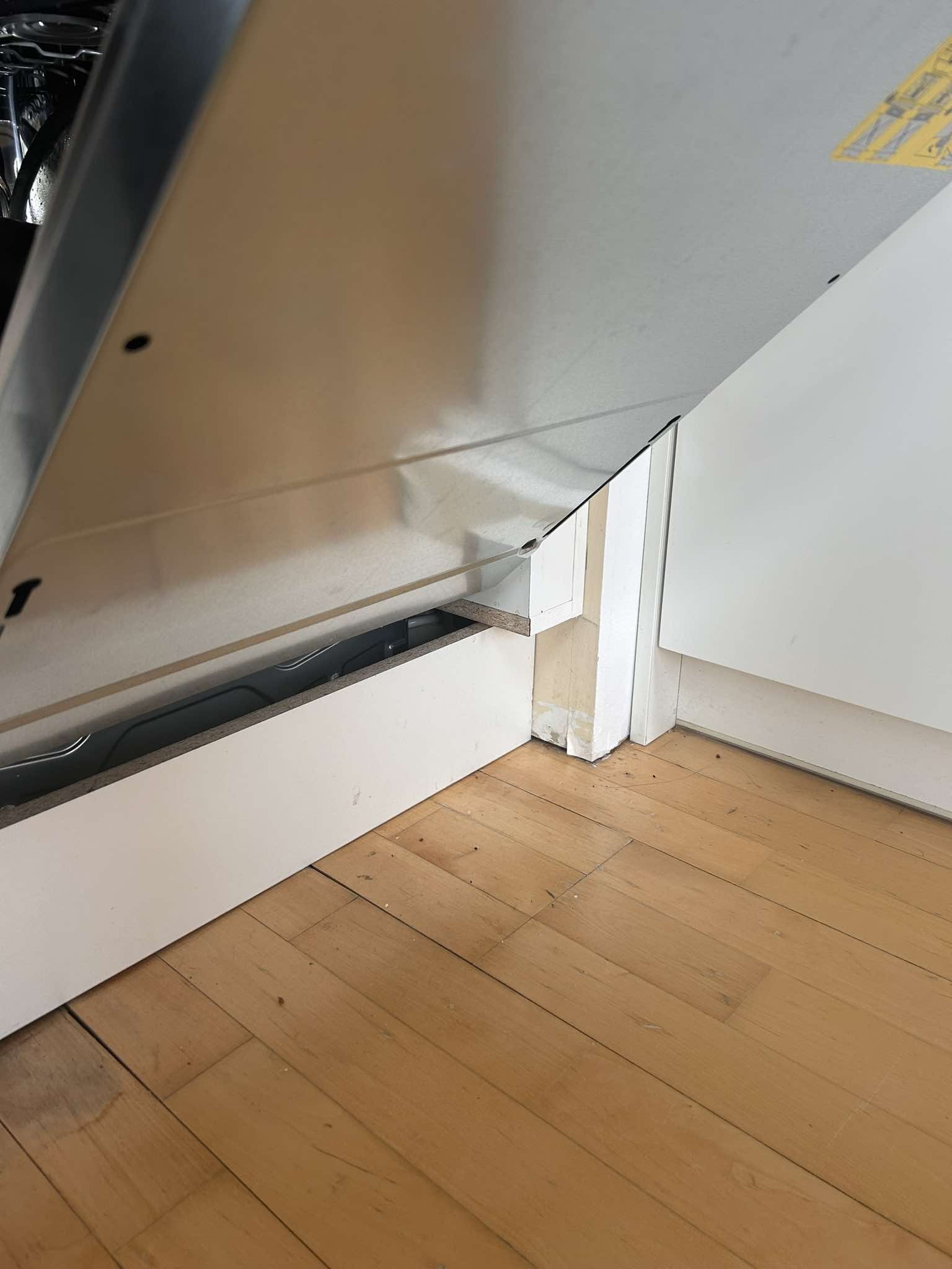 Vana kapp oli 58 cm lai, sisse sai pandud 44cm nõudepesumasin. Külgedele lisati 7cm vahesein, et masin püsiks kinni.