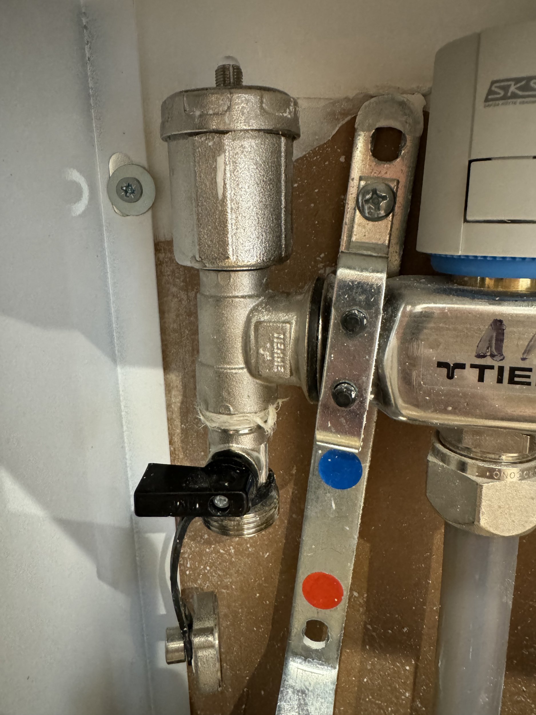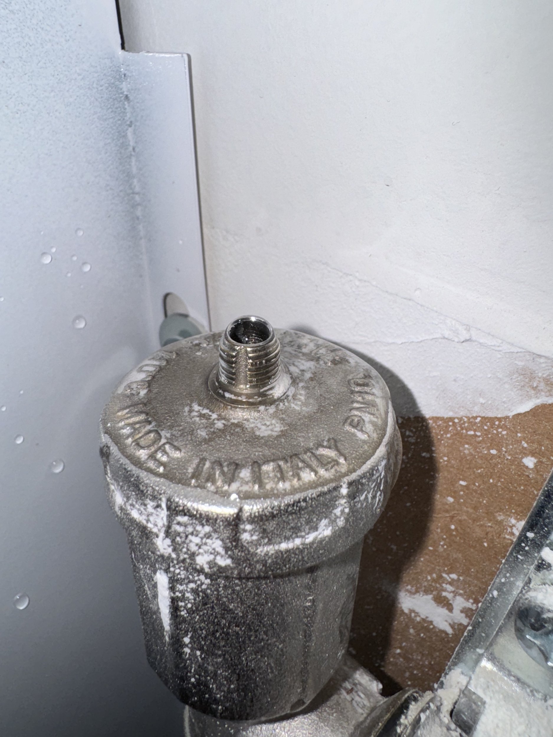 Üldfotol vasakul ülemine külma vee oma sulgeja (kraan suunaga alla ja alarõhu ventiil suunaga üles). Sulgeja on katki, sest alarõhu ventiili otsast torukesest tilgub vett.