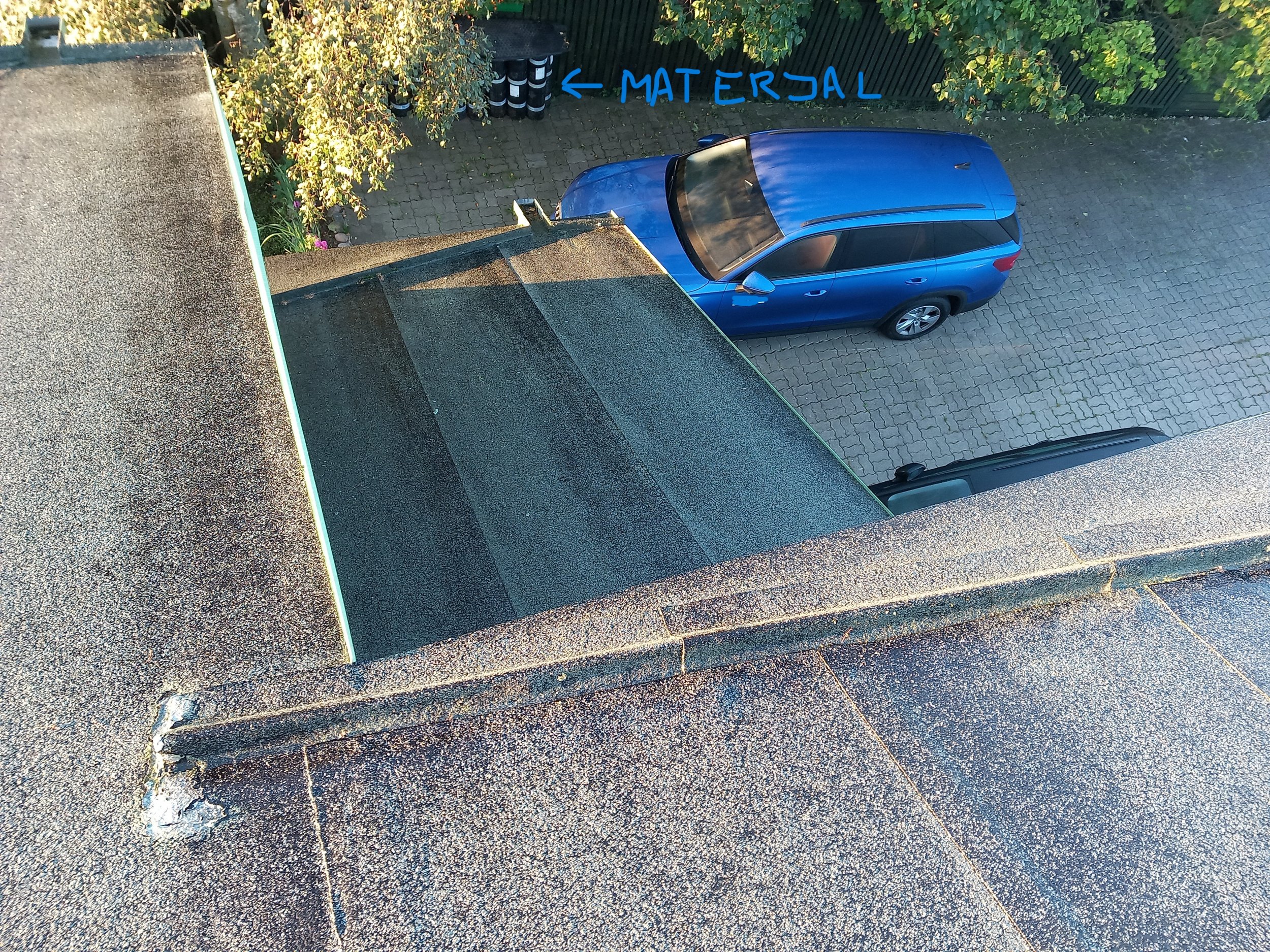Ol.olev SBS on 2003a Icopal, ei leki kusagilt, kaitsekihi kruus on põhimõtteliselt vihmade ja hoolsa peremehe sambla nühkimise tõttu eemldunud. Uus kate, sama tootja ostetud ja seisab maja kõrval vertikaalasendis.