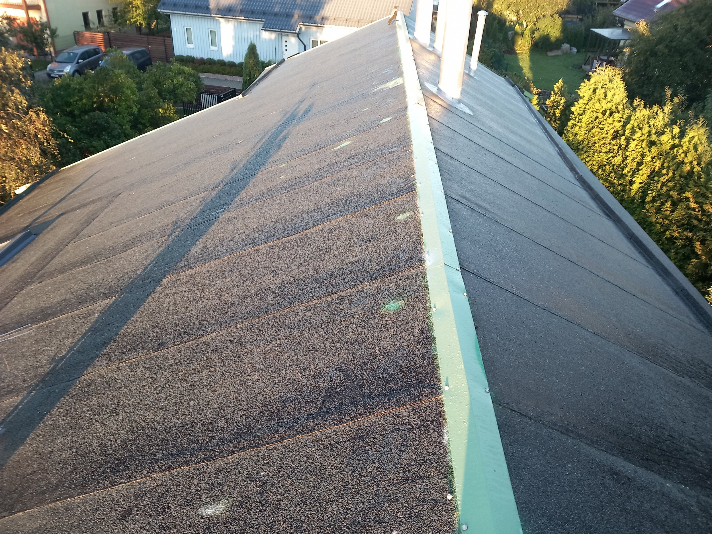 Mõte siis põletada lihtsalt vanale kattele uus peale, korstnate ja torude läbiviigud katta ka selliselt nagu varem tehtud. Katus on suurepäraselt peal käidav, 22kraadi kui õigesti mäletan, Katusele pääsuks on redelid olemas