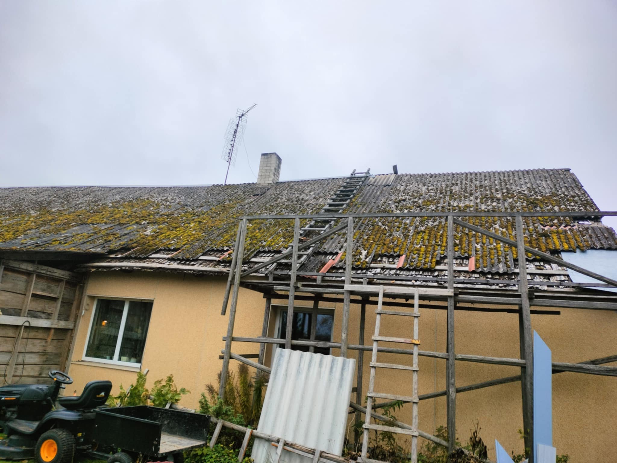 vahetada oleks vaja maja üks pool katuse eterniitidest, teinepool on juba tehtud. samuti oleks vaja vanad eterniit plaadid ja sindel eemaldada enne uute paigaldust. uued plaadid on Ukraina suured eterniit plaadid. katuse pind on 200m2. Utiliseerida ei ole vaja
