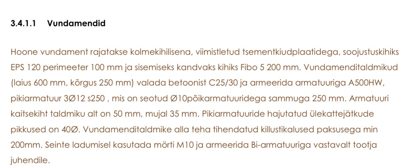 Vundamendi mahamärkimised ja kõrgus 0 , organiseerin ise.