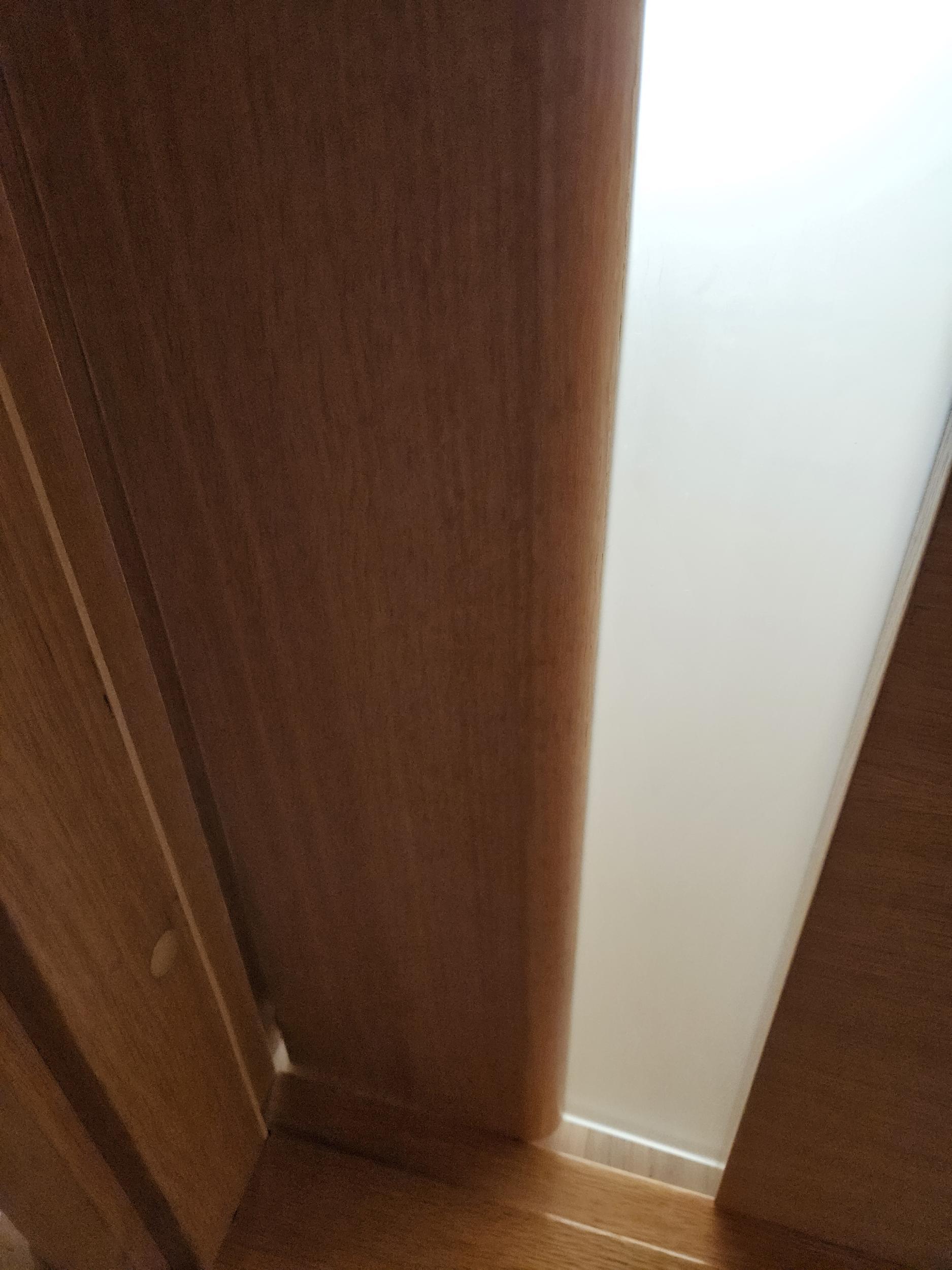 Kahe puidust siseukse klaasist osa on koos lingipoolse puidust osaga alla vajunud, mistõttu uksed käivad tugevalt vastu lävepakku. Vajumine on silmaga näha. Töö teostajal tuleks klaasi juurest puitosa lahti võtta ja tagasi liimida. Ühe ukse alla vajunud paneel logiseb, kuid ise ei ole proovinud, kuidas klaasosa lahti tuleb.
